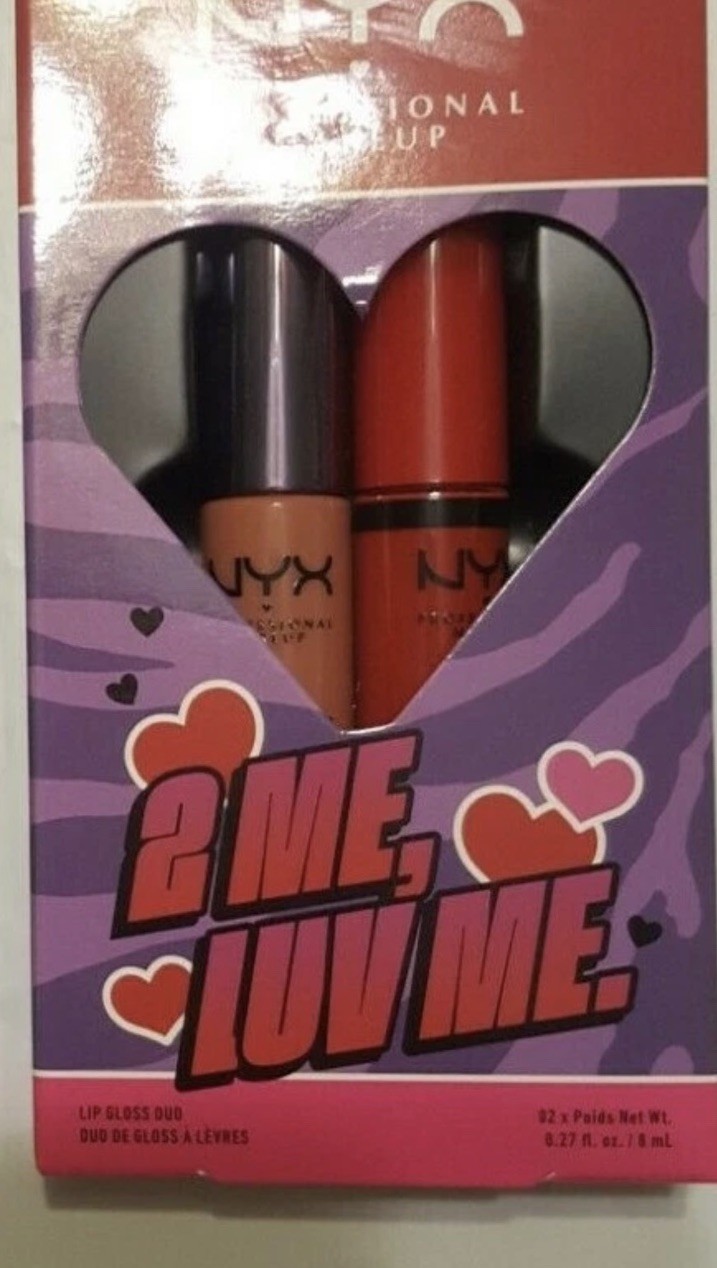 2 NYX Makeup Lip Gloss Duo Butter Gloss Sorbae Marshmallow Candy Lot Valentines