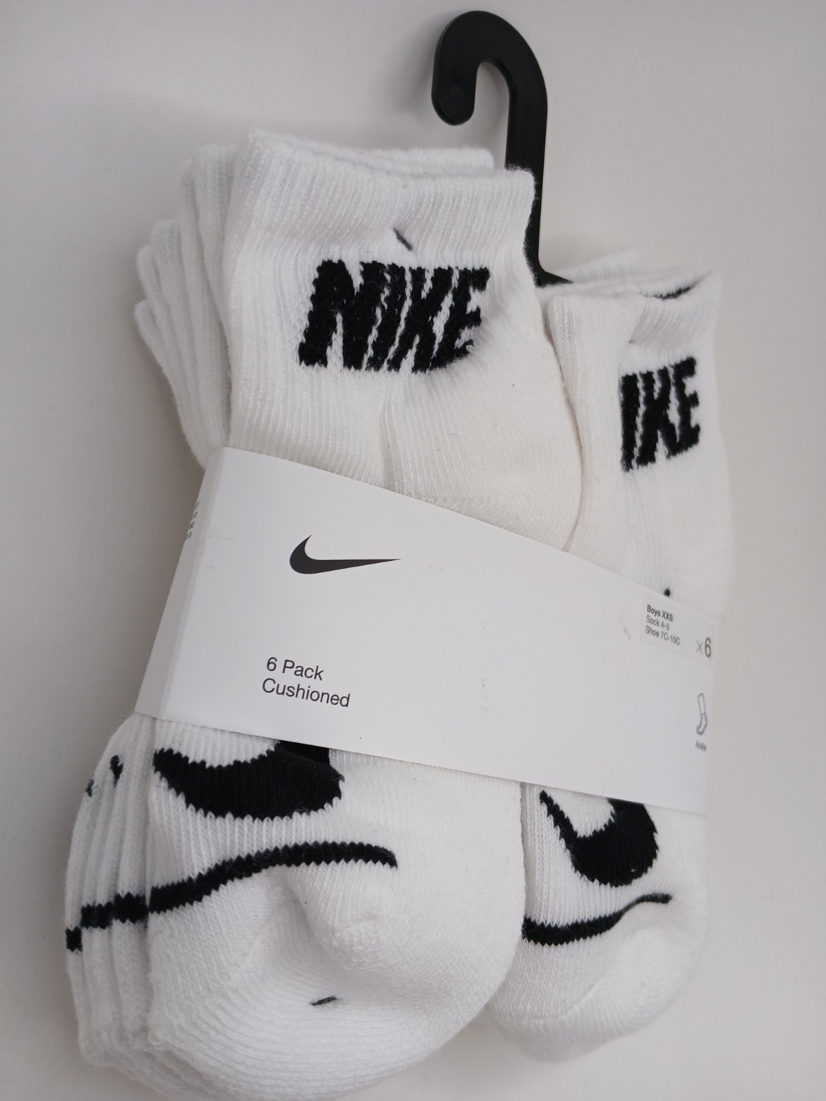 Nike Boys Ankle Socks 6-Pack Cushioned White Black Logo Size XXS 4 5Y