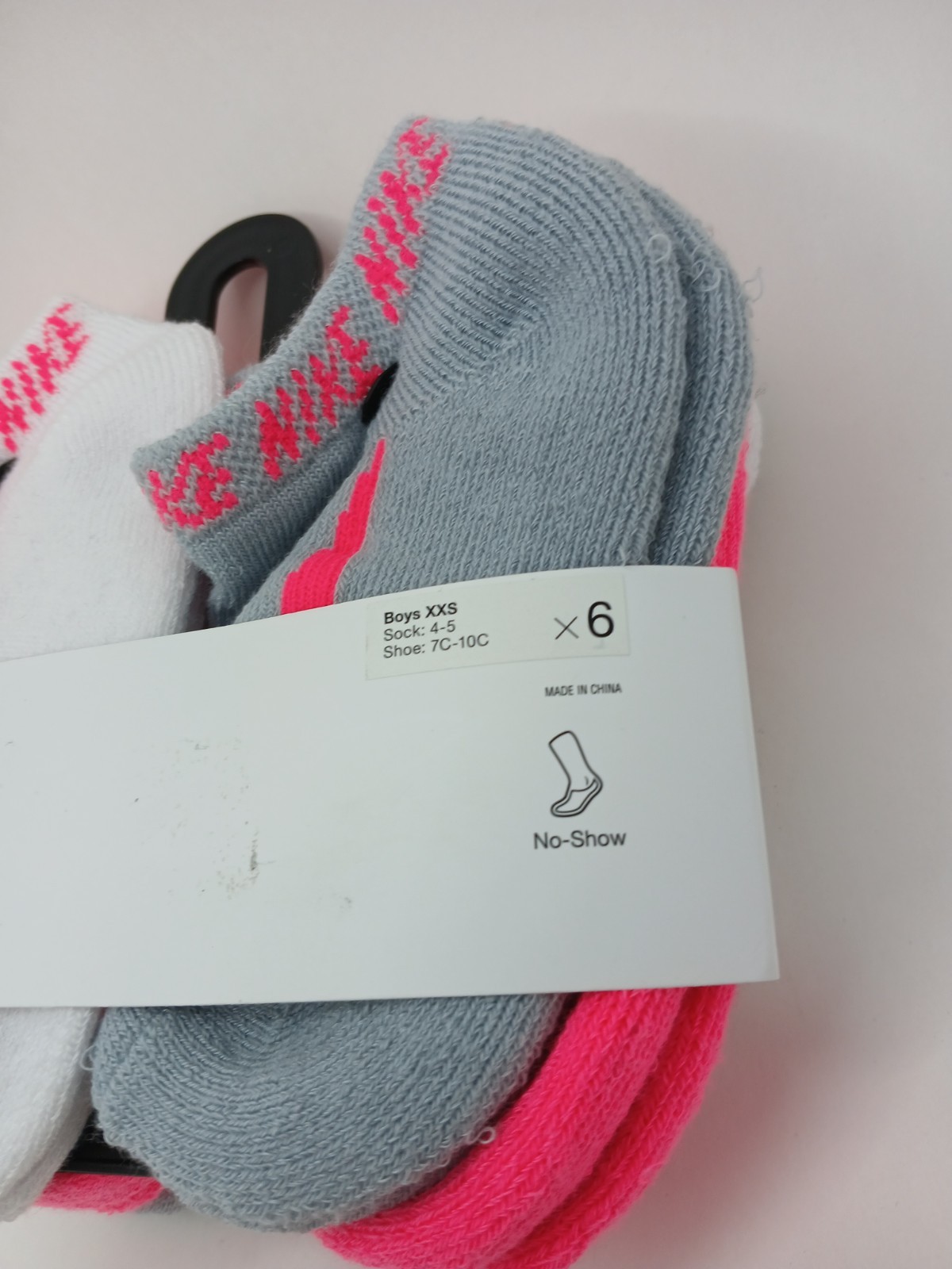 Nike Boys No Show Socks 6-Pack Cushioned Pink Gray White Size XXS 7C-10C