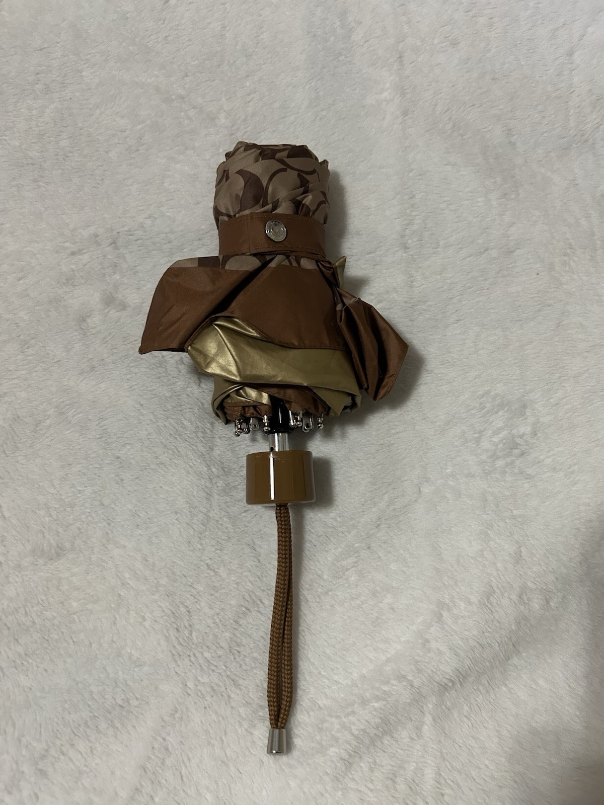 как выглядит Coach Brown Gold Mini Umbrella Signature Logo EUC фото