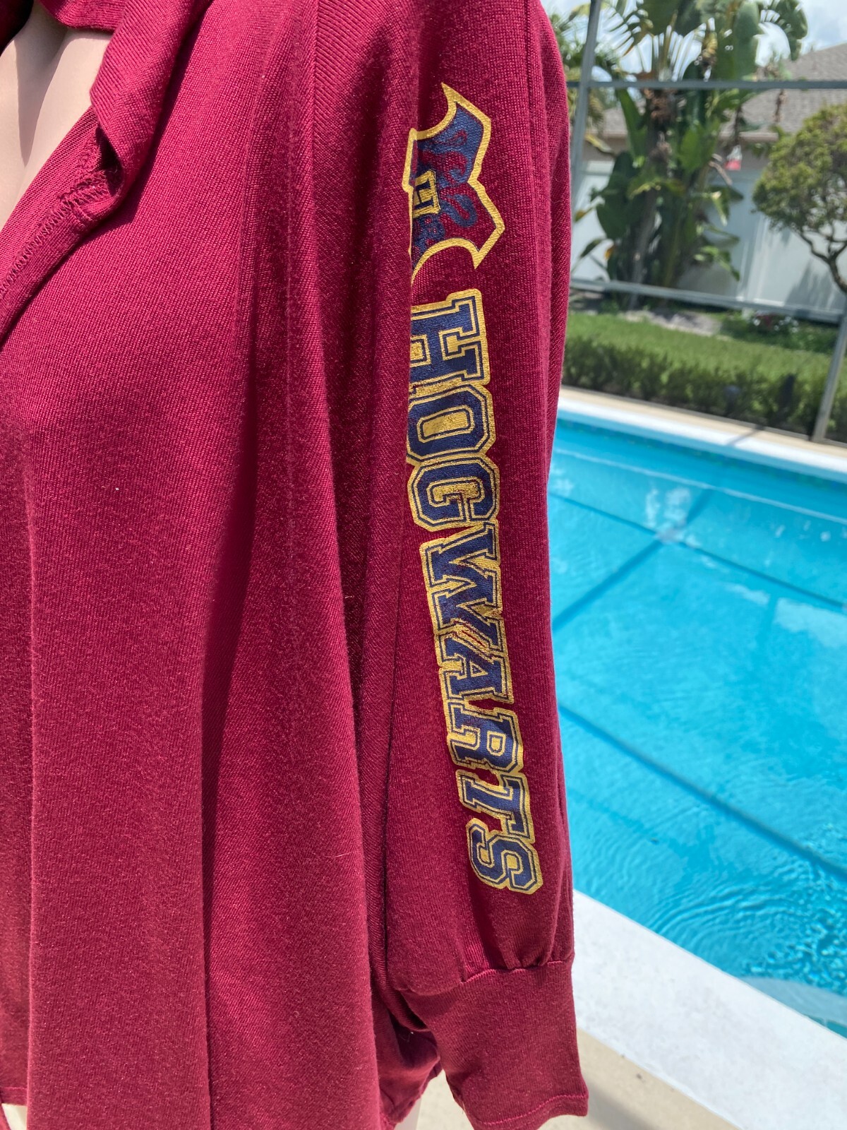 как выглядит Harry Potter Open Red Cape M Cloak Burgundy Hogwarts Hooded Robe Adult Short фото