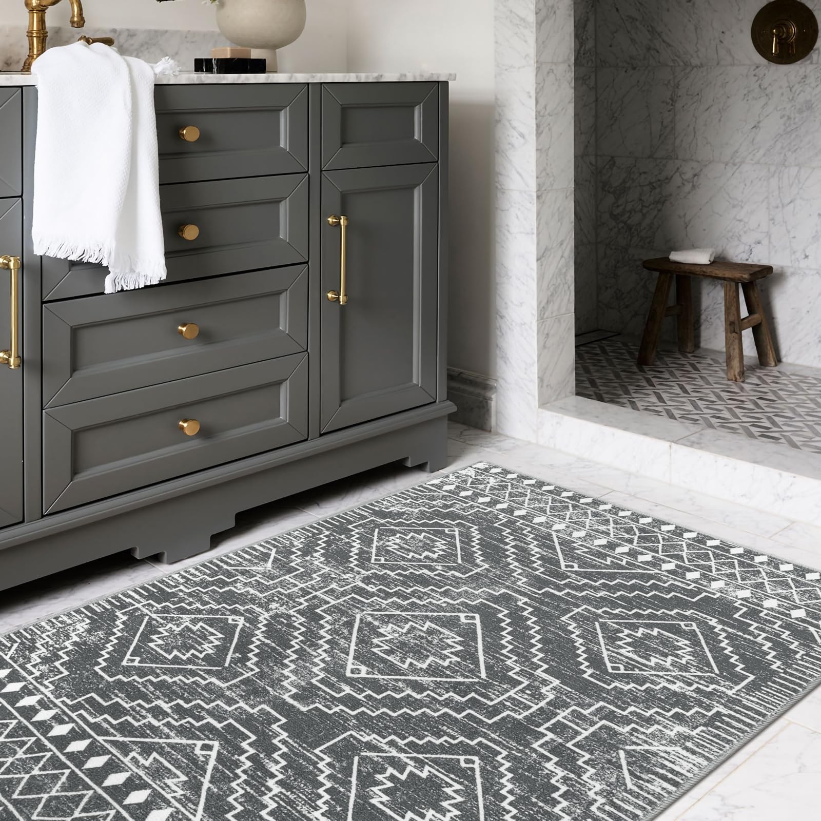 Moroccan 3x5 Washable Area Rug, Boho Living Room Rug, Non-Slip Farmhouse Rust...