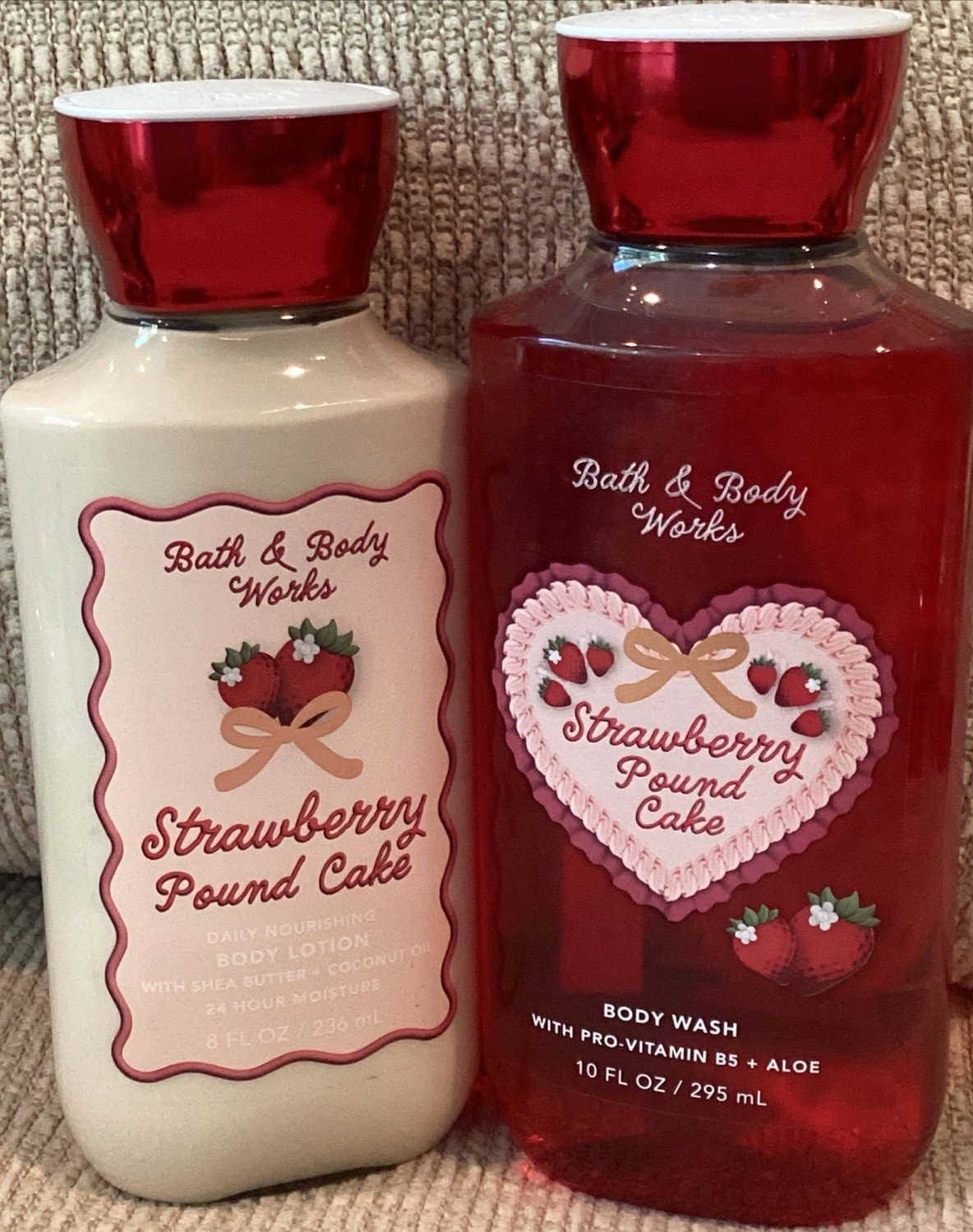Bath Body Works STRAWBERRY POUND CAKE Body Lotion Shower Gel Set NEW