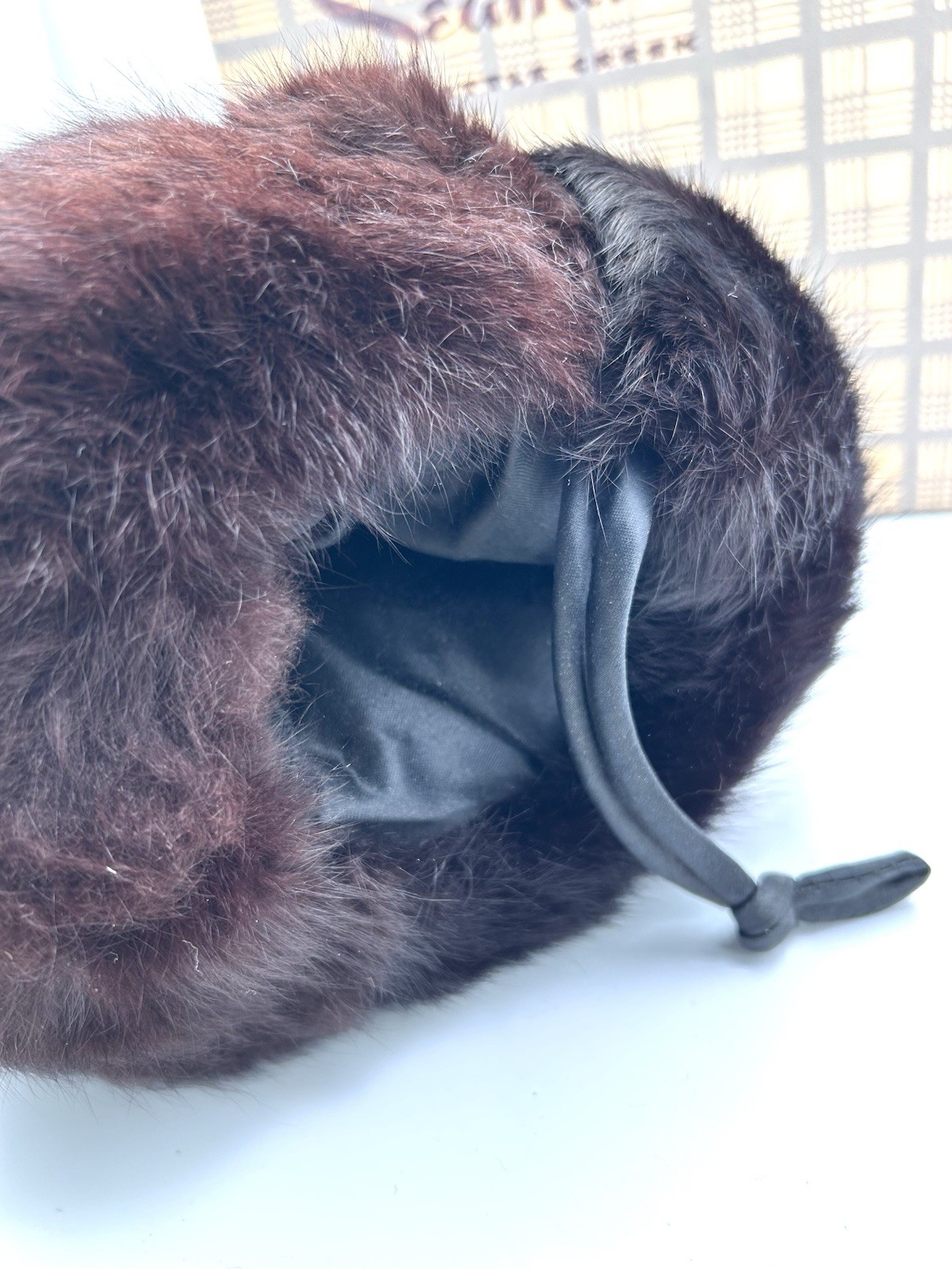 как выглядит Vintage Black Brown Mink Satin Lined Hand Warmer Fur Muff 8 x 7.5 New In Box фото