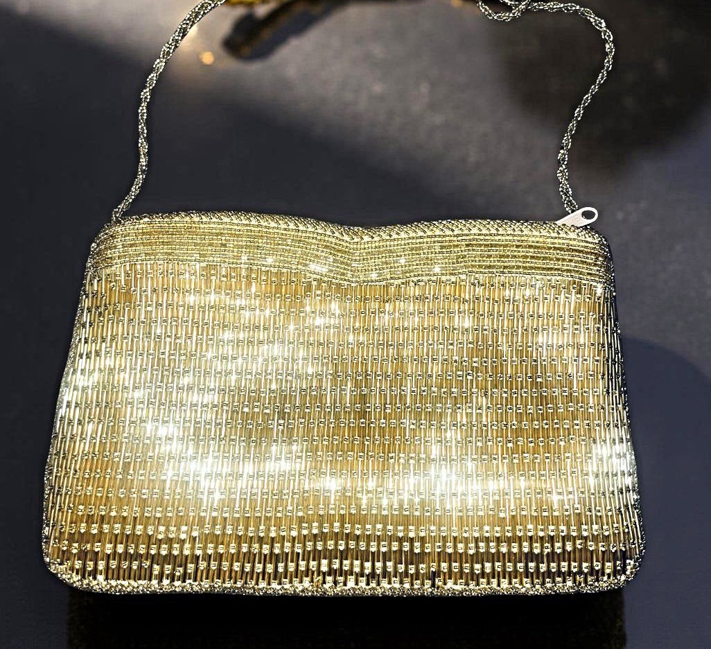 VINTAGE Walborg Beaded Evening Clutch-Best Comp 1950s 60s Gold Bag