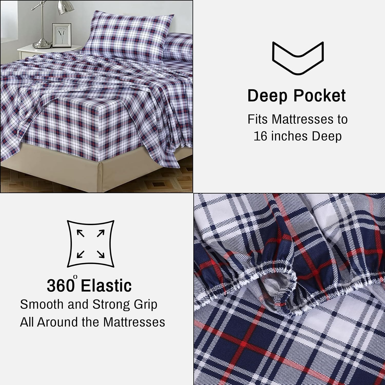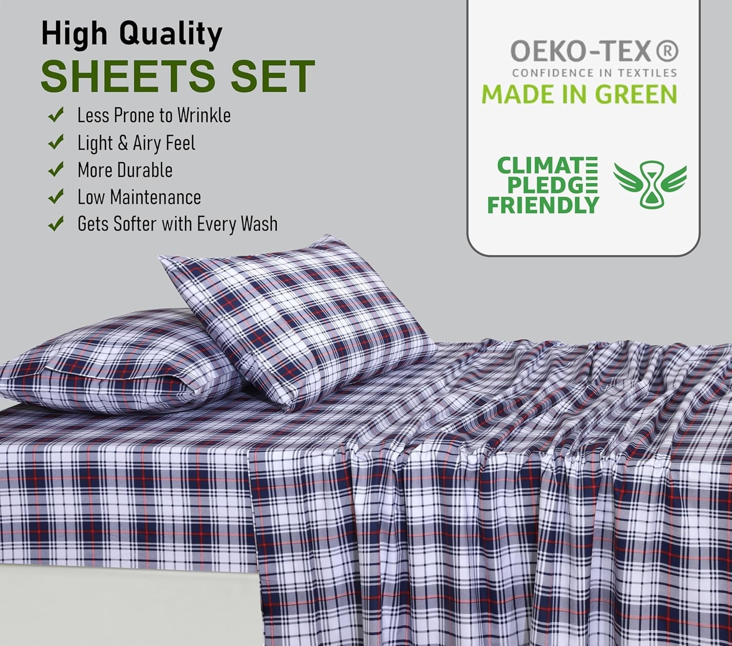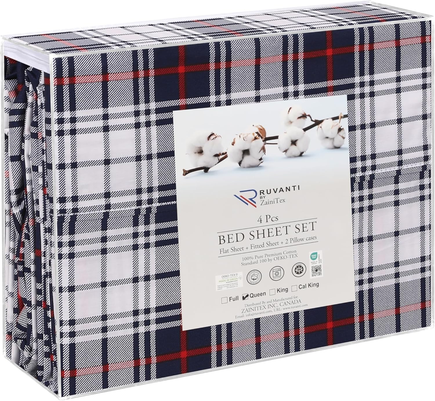 • RUVANTI 100 Cotton Queen Sheet Set 4-Piece Percale Deep Pocket Prussian