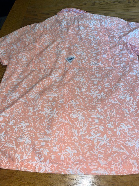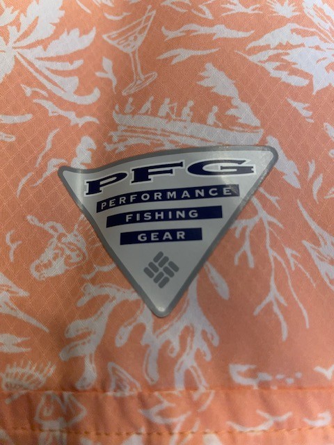 • Columbia PFG Omni Shade Peach Floral Vented Fishing Shirt - Men's Size M