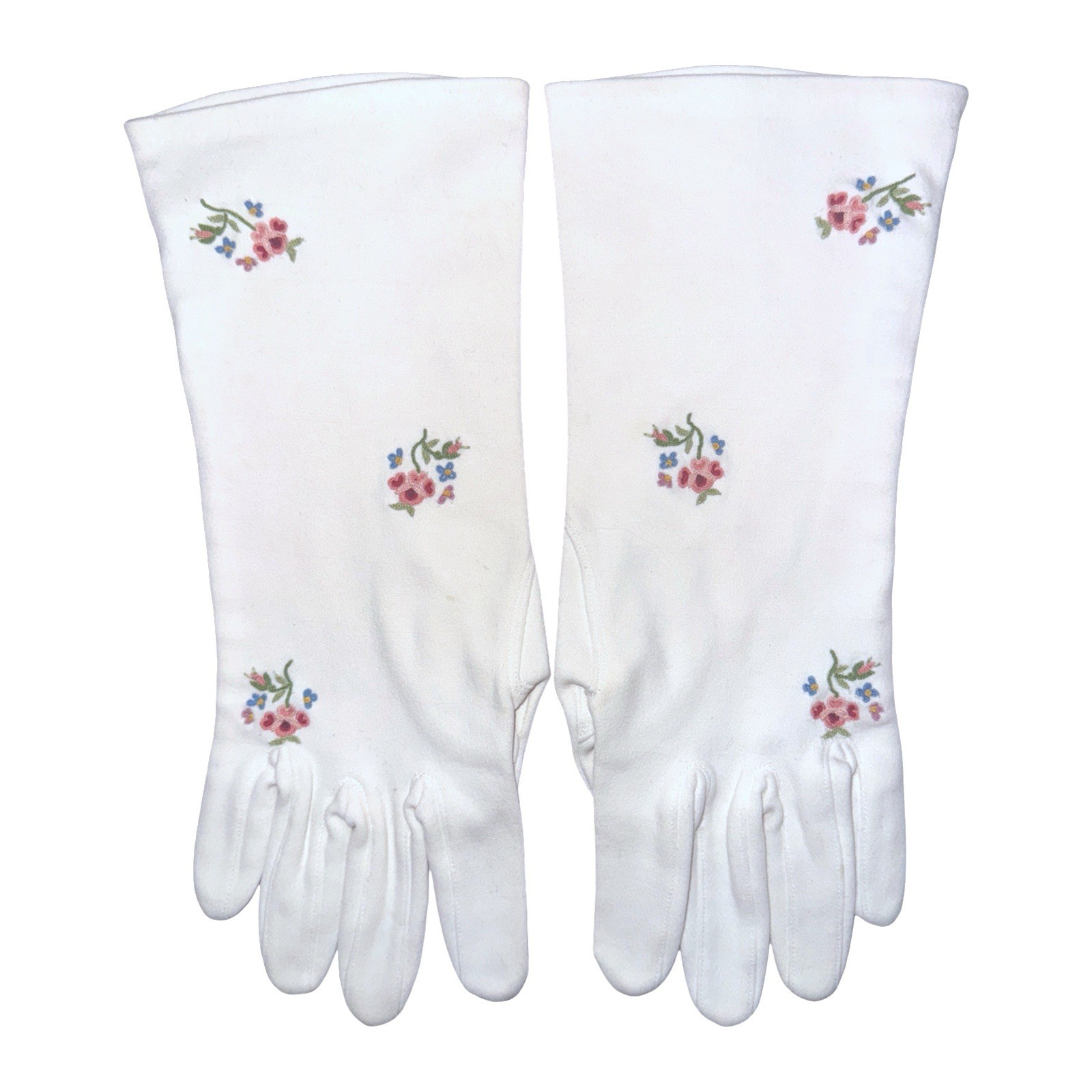 Vintage White Floral Embroidered Mid Length Gloves 50s 60s