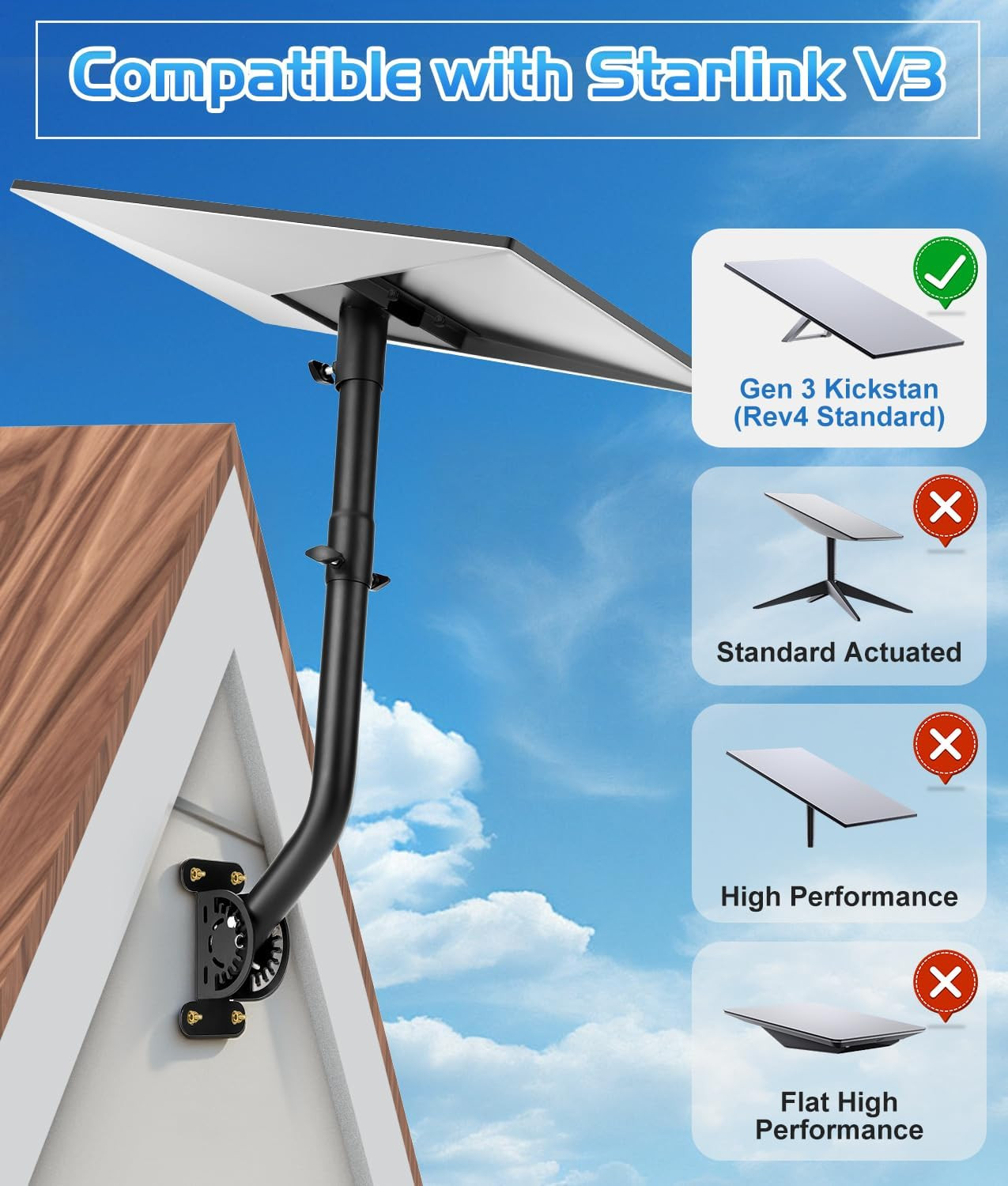 Starlink Gen 3 Mount, Adjustable Starlink Gen 3 Pole Adapter with 2-In-1 Router