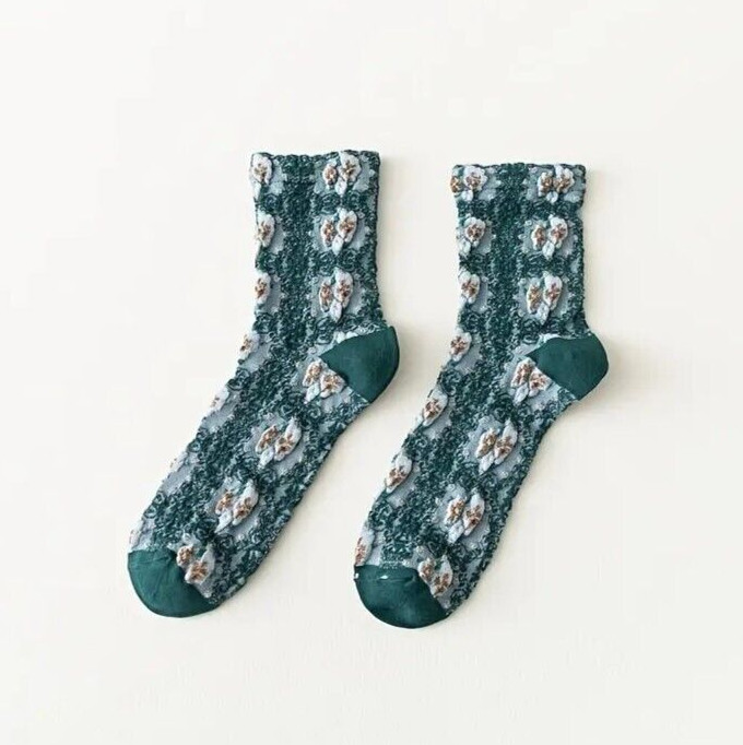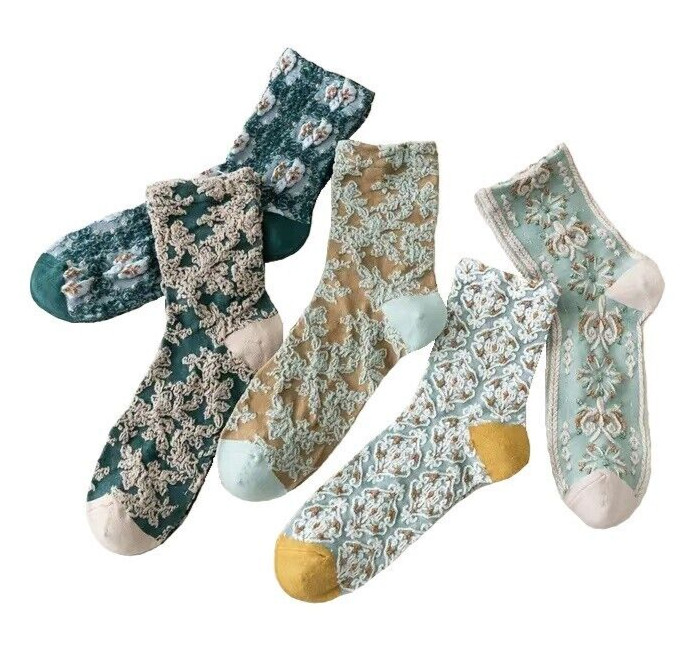 Womens Socks Vintage Floral Embroidery Pattern Gift for her Crew Socks 5 Pairs