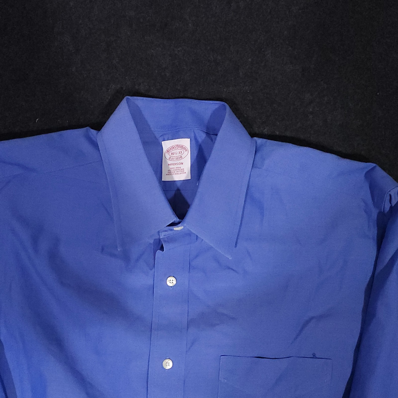 Brooks Brothers Button Down Shirt Mens 16.5-33 Madison Blue Long Sleeve Non Iron