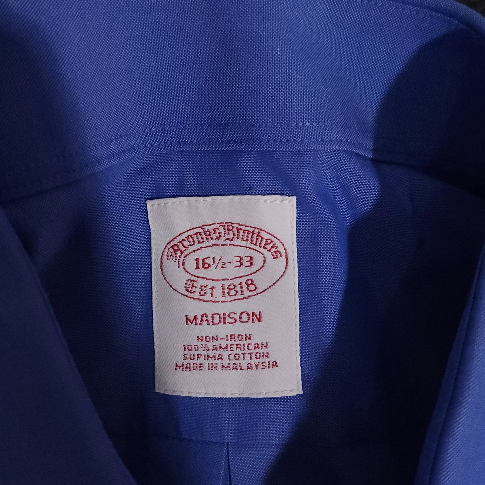 как выглядит Brooks Brothers Button Down Shirt Mens 16.5-33 Madison Blue Long Sleeve Non Iron фото