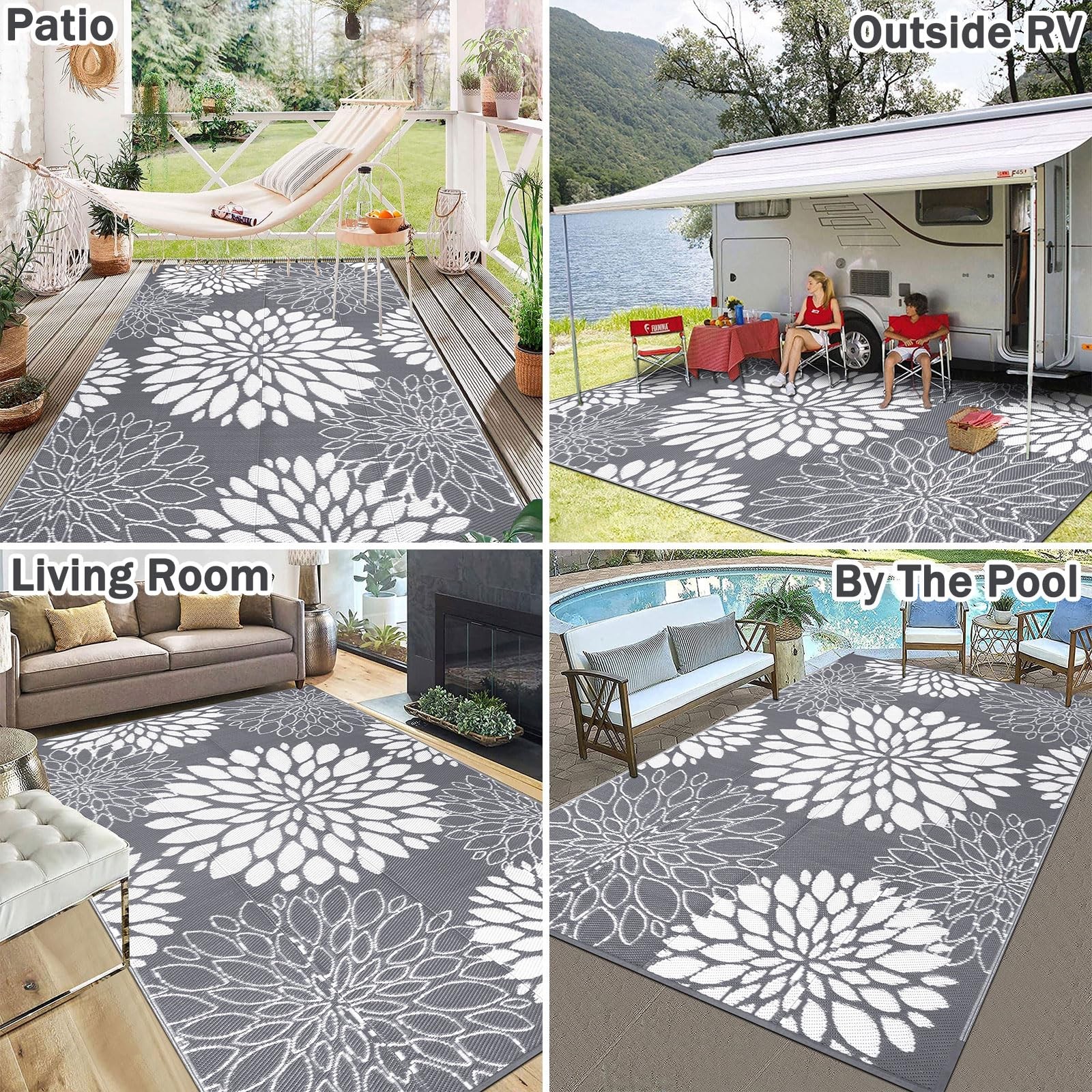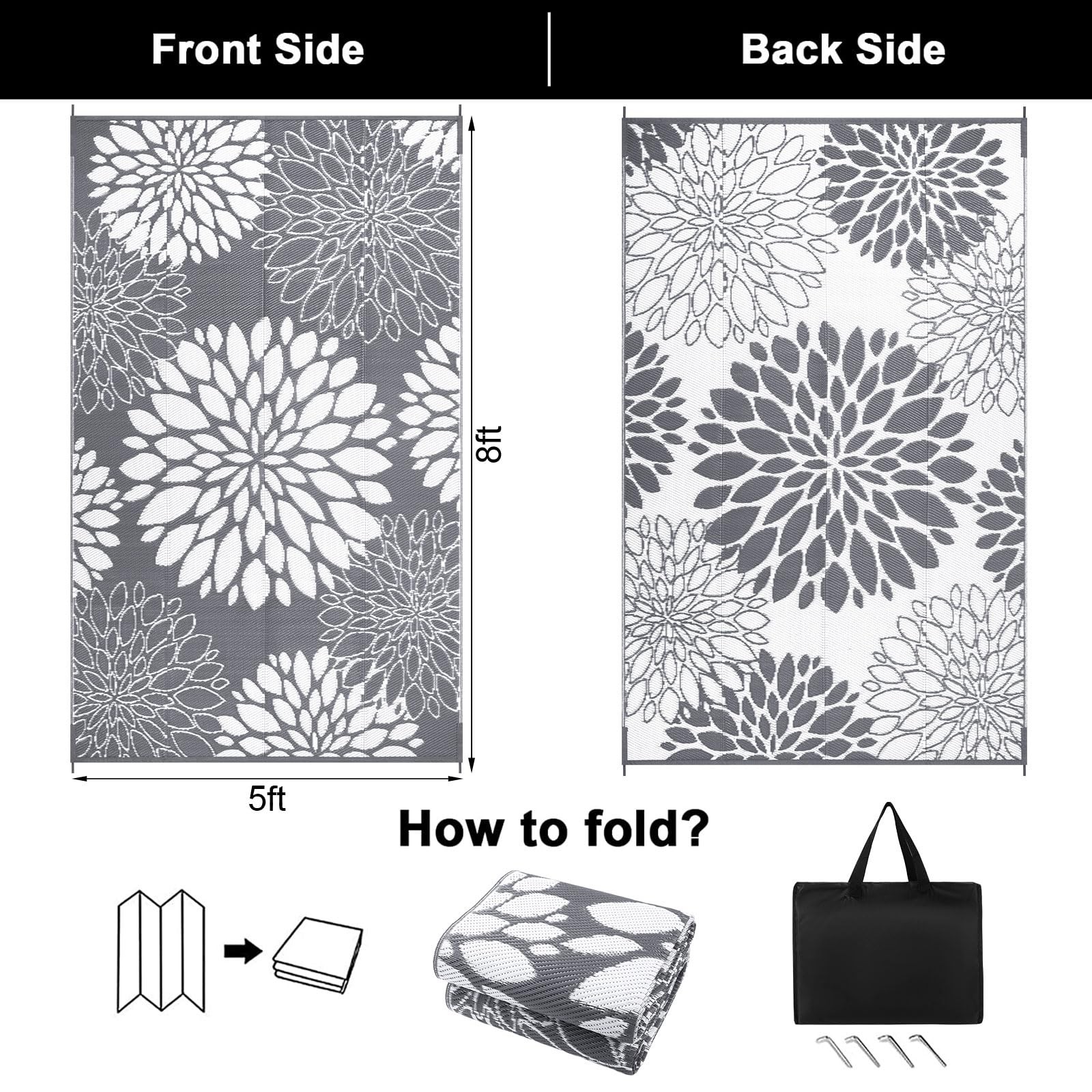 Reversible Outdoor Rug 5x8Ft Waterproof Patio Rug Carpet Portable Outdoor Pla...