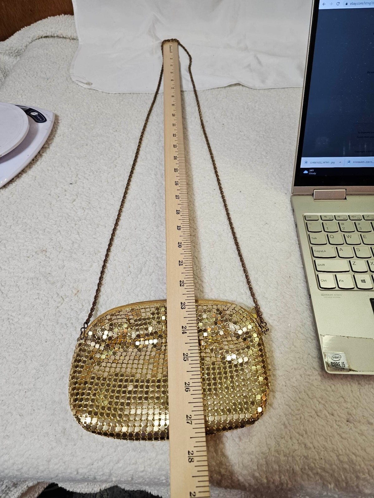 Vtg Purse Handbag Evening Crossbody Bag Gold Metal Mesh Long Chain