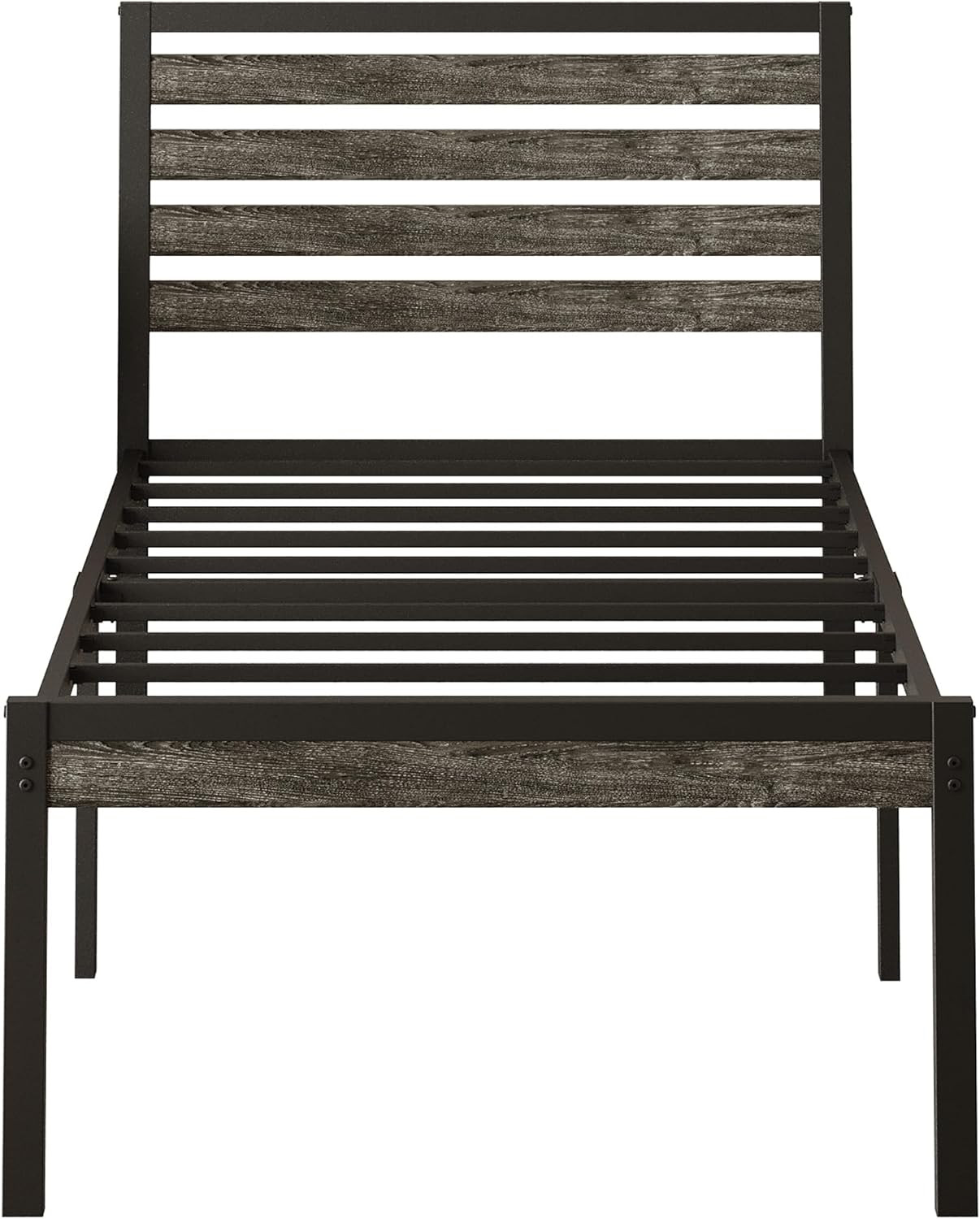 18 Inch Metal Twin XL Bed Frames with Gray Wooden Headboard, Heavy Duty Tall Twi