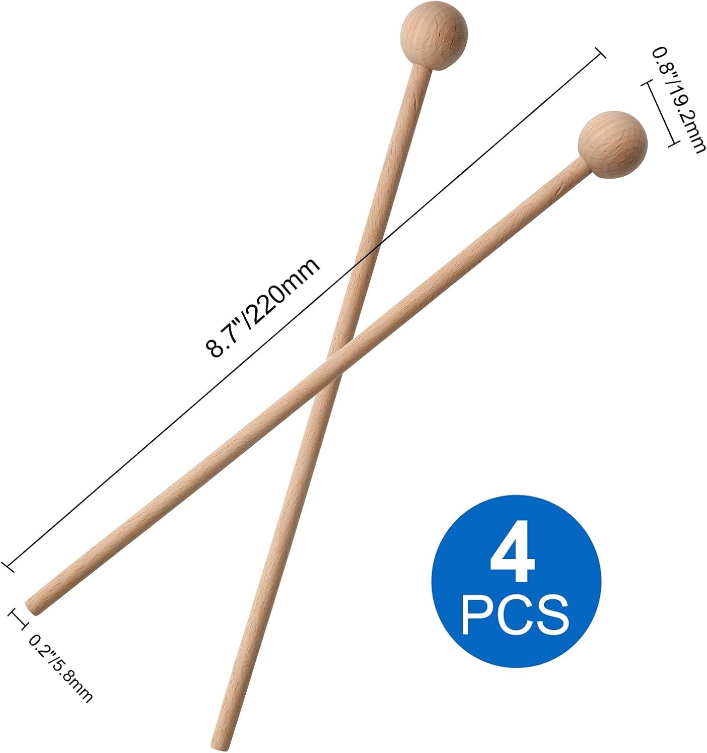 4 Pcs Wood Percussion Sticks 8.7 Xylophone Mallets Sticks Glockenspiel Mallets