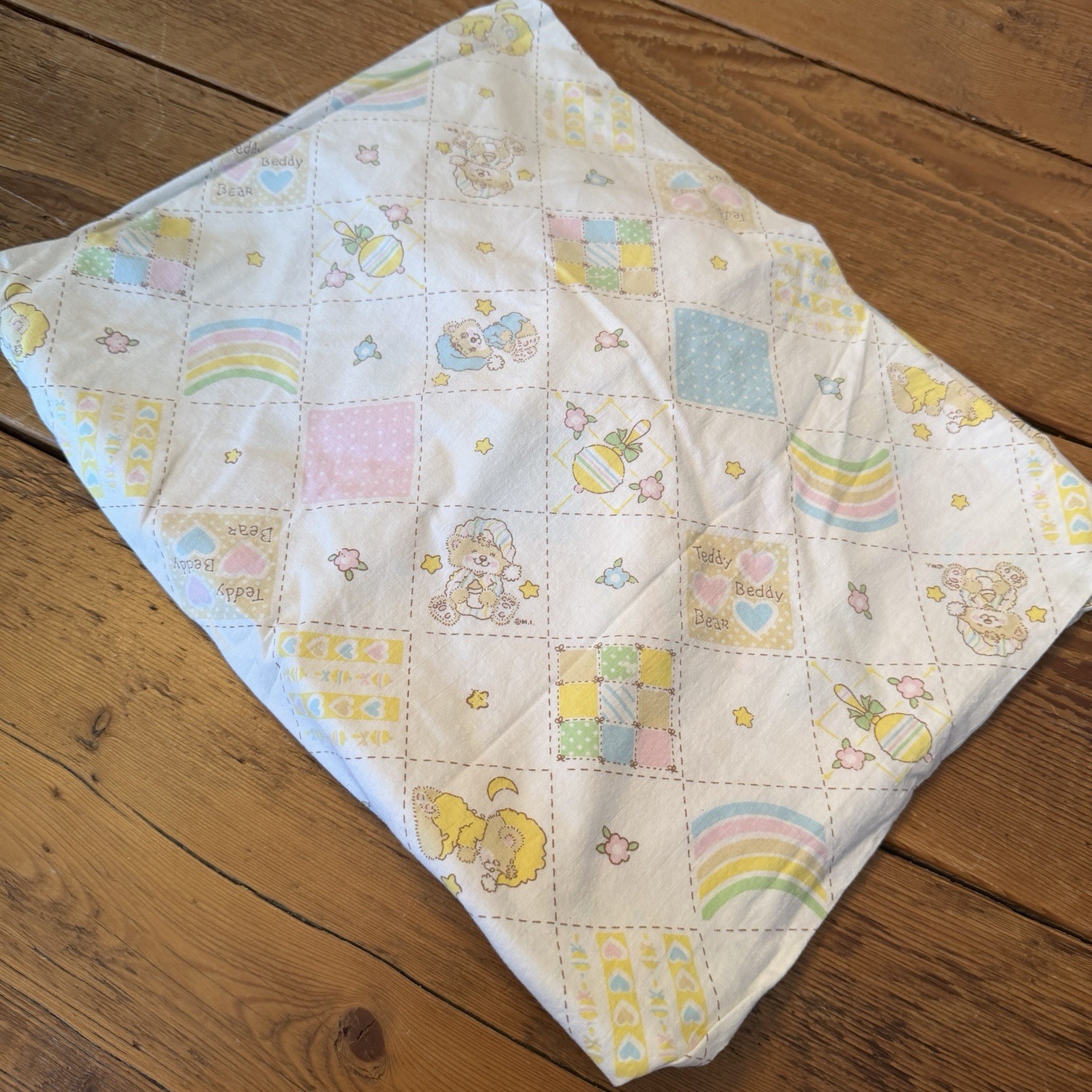 Vintage Teddy Beddy Baby Crib Sheet Quilt Pattern Riegel Rainbow Bears 1980 s