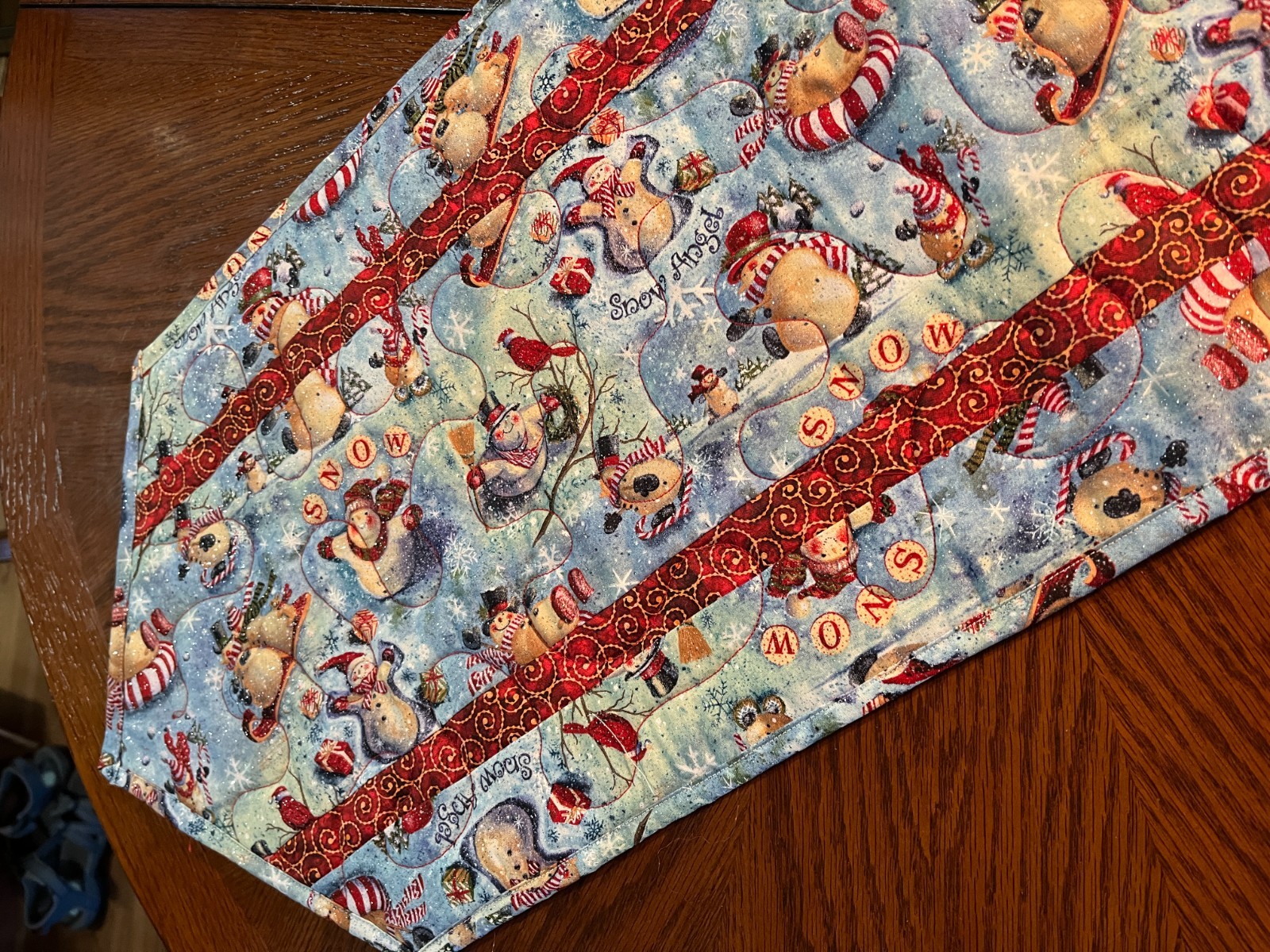 Handcrafted-Quilted Table Runner- It's a Winter Wonderland - Glitter Snowmen