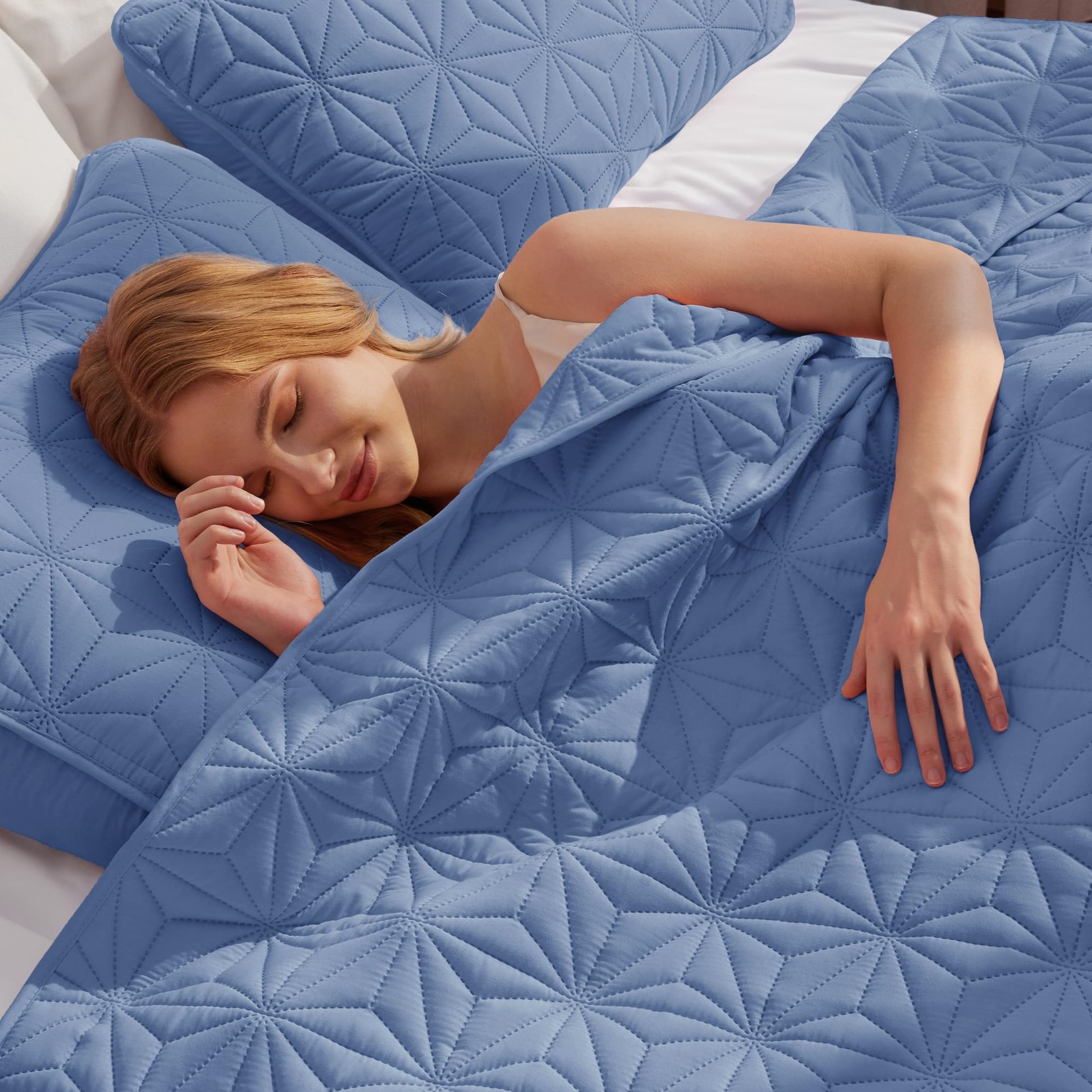 как выглядит Whale Flotilla California King Quilt Set - Soft Bluish Grey, Oversized Bed фото