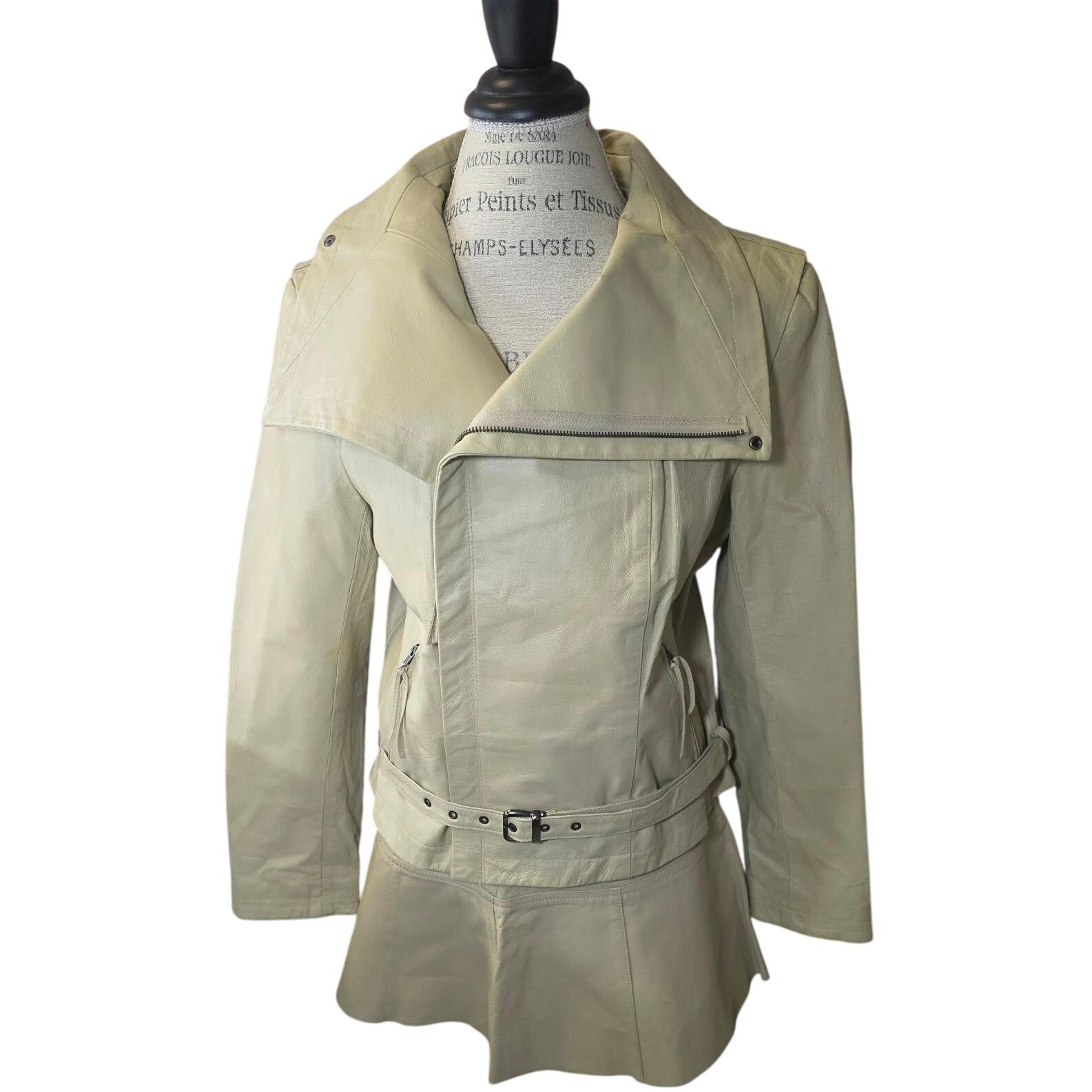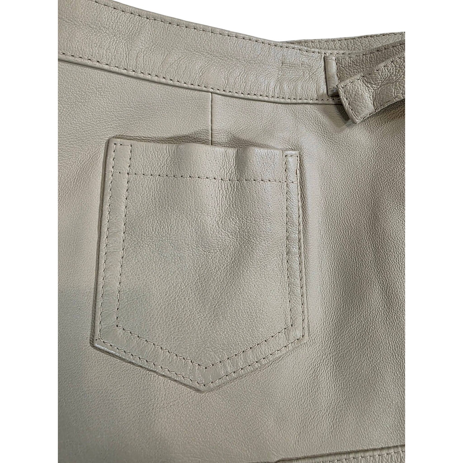 как выглядит VTG 90s Newport News Cream genuine Leather Moto Set Jacket Mini Skirt фото