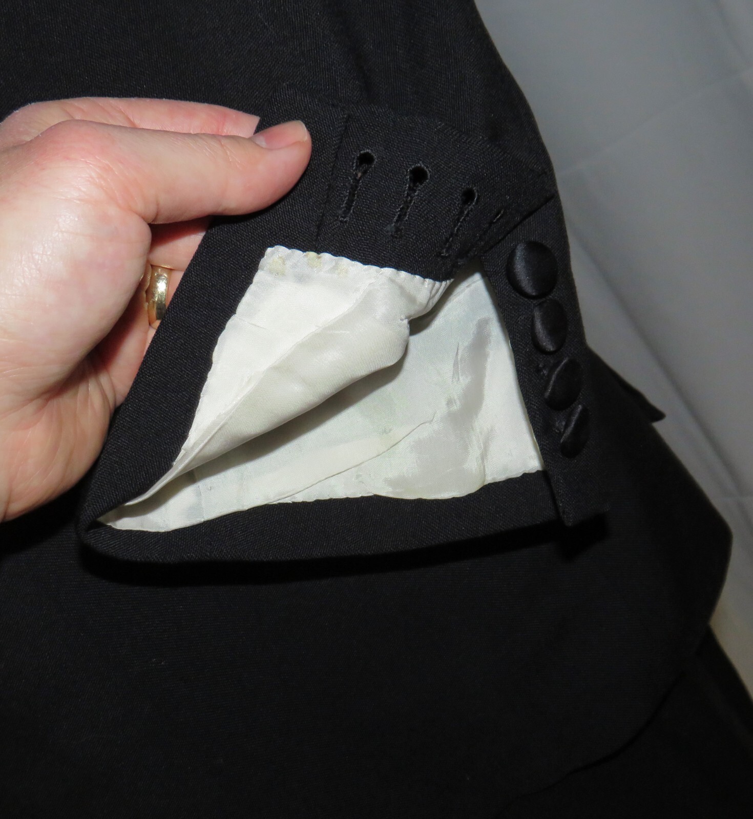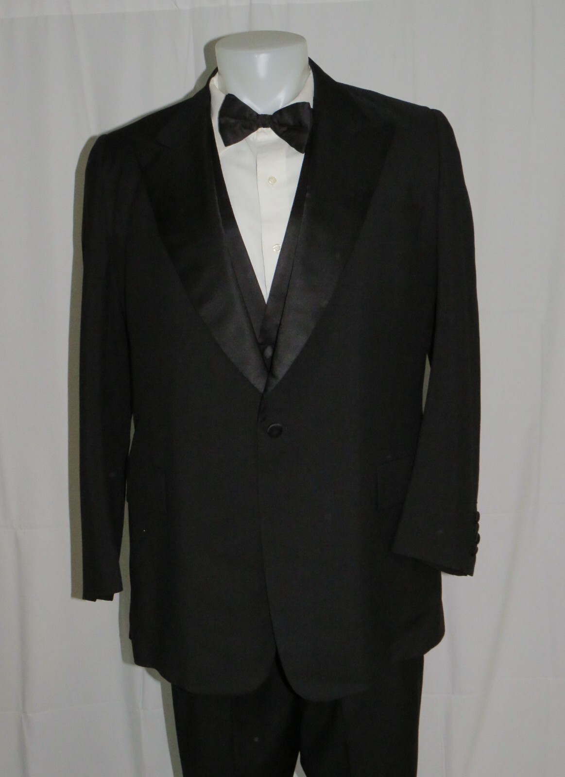 как выглядит William Fioravanti Black Solid Woven Bespoke Three Piece One Button Tuxedo 38L фото