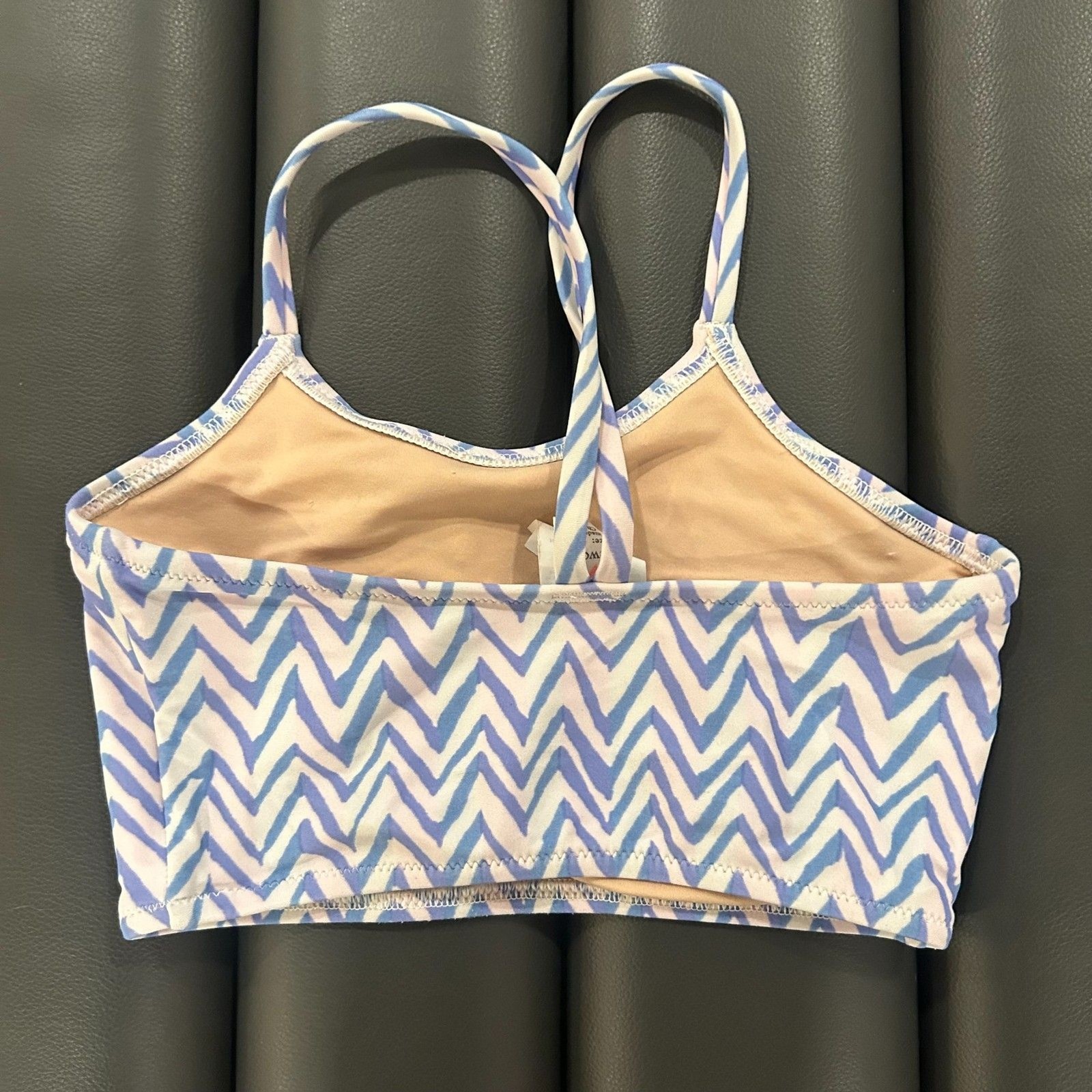 Crewcuts Kids Girls Striped Zig Zag 2-Piece Swimsuit Blue White 4-5