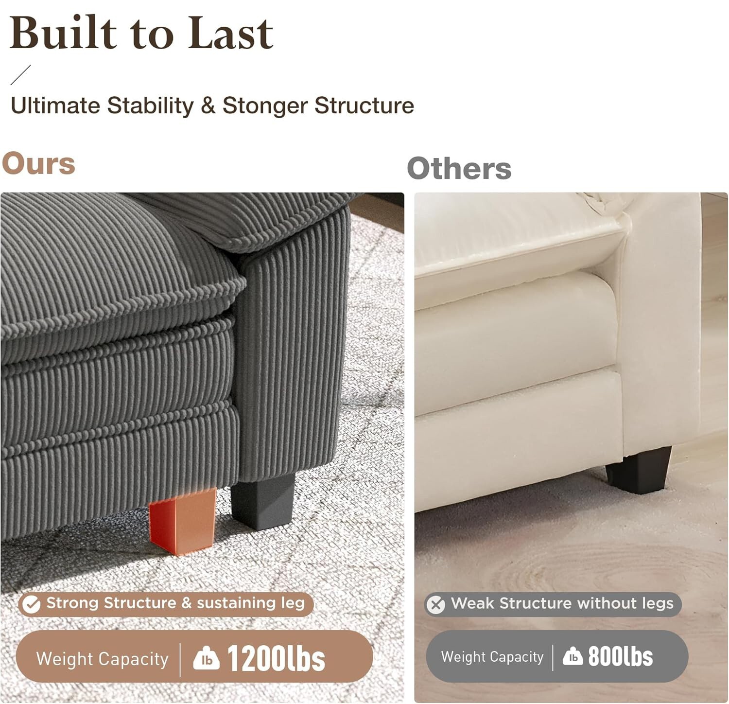 Modular Sectional Sofa Corduroy Cloud Couch with Chaise and Cushion U-Shaped