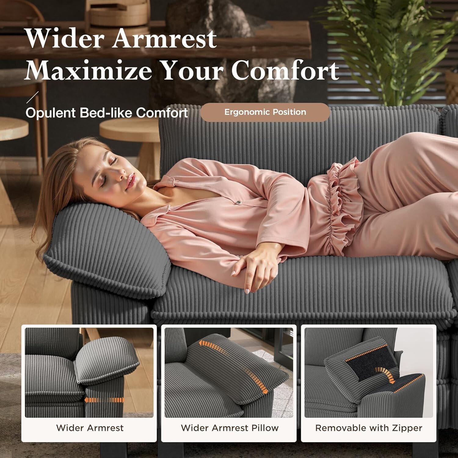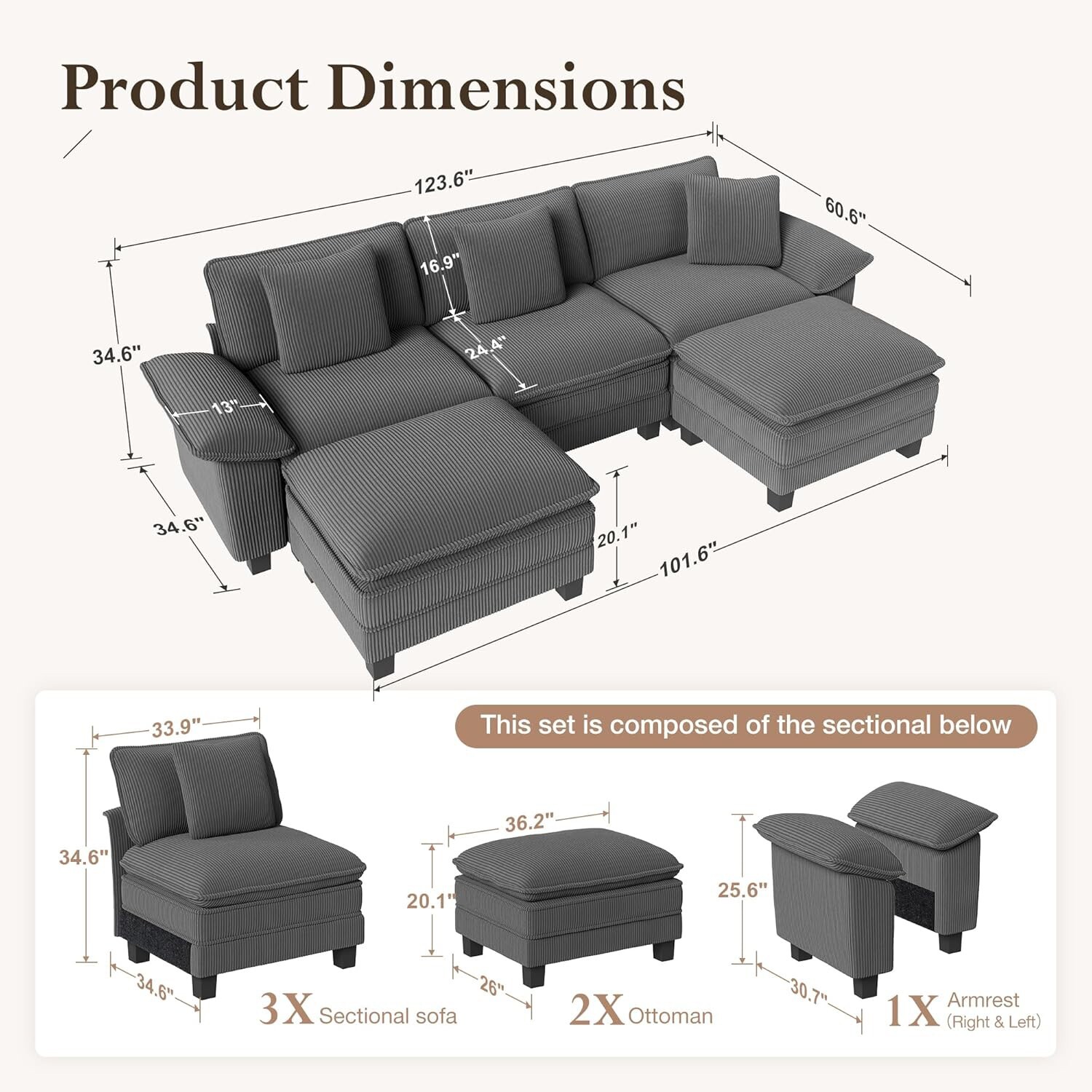 Особенности: With Cushions, Modular Sectional Couch, with Removable Arms, Corduroy Fabric