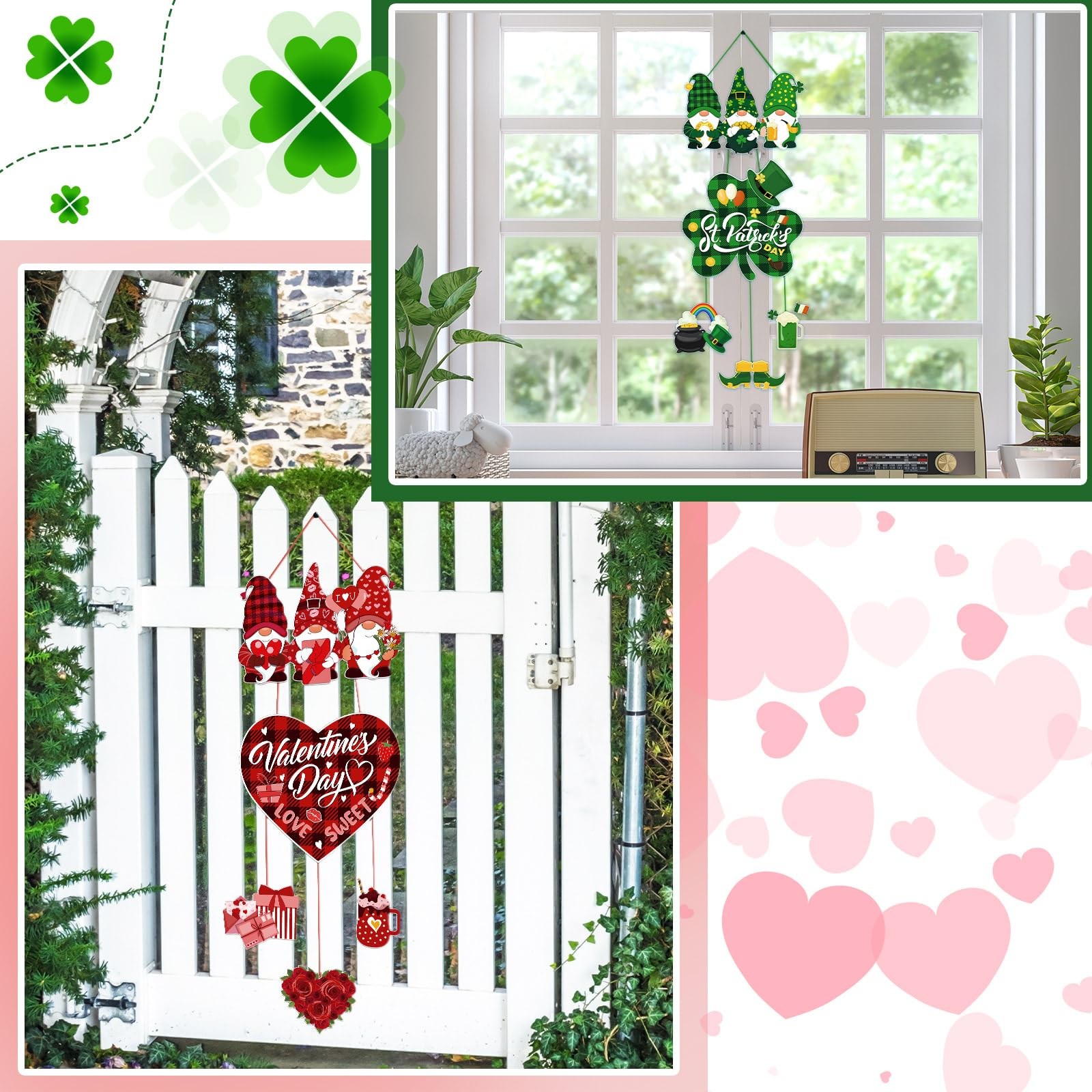 2 Pcs Valentine s Day St Patricks Day Decorations Valentines Door Sign Gnome ...