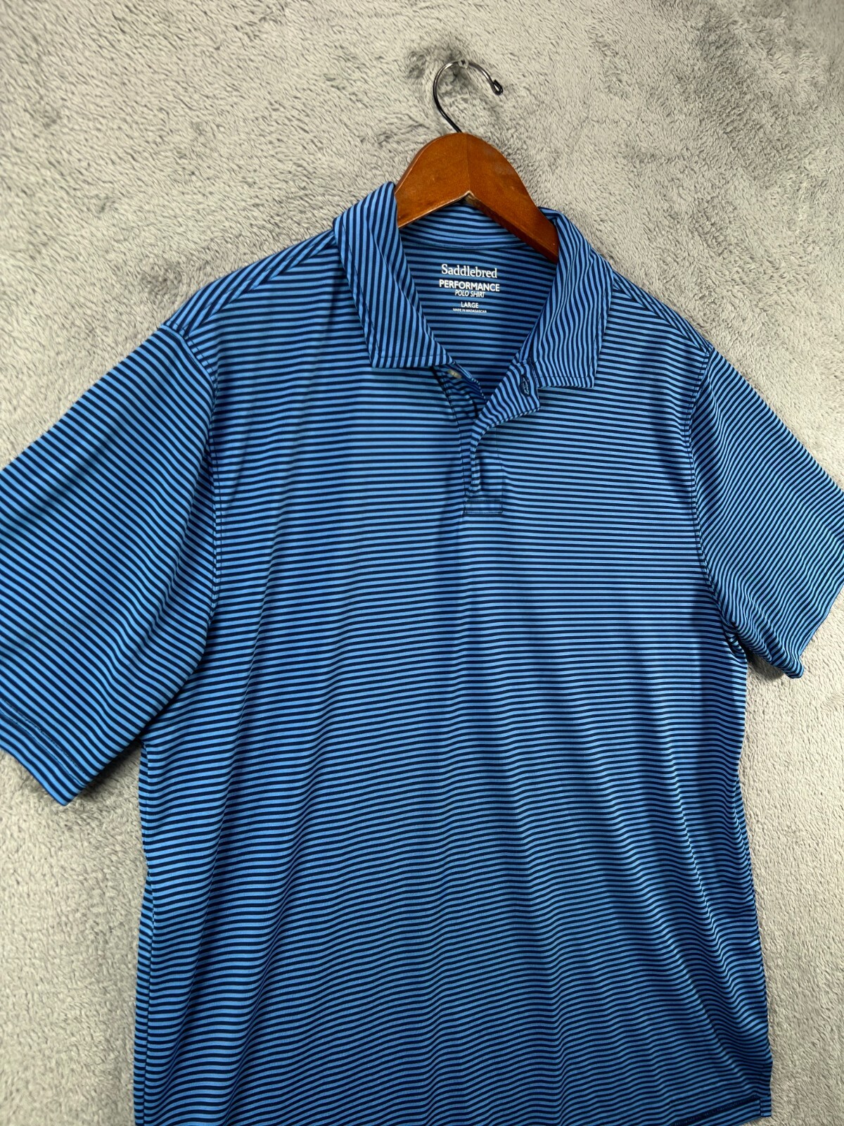 SADDLEBRED Mens Large Performance Polo Shirts Blue Stripe Short Sleeve Wicking