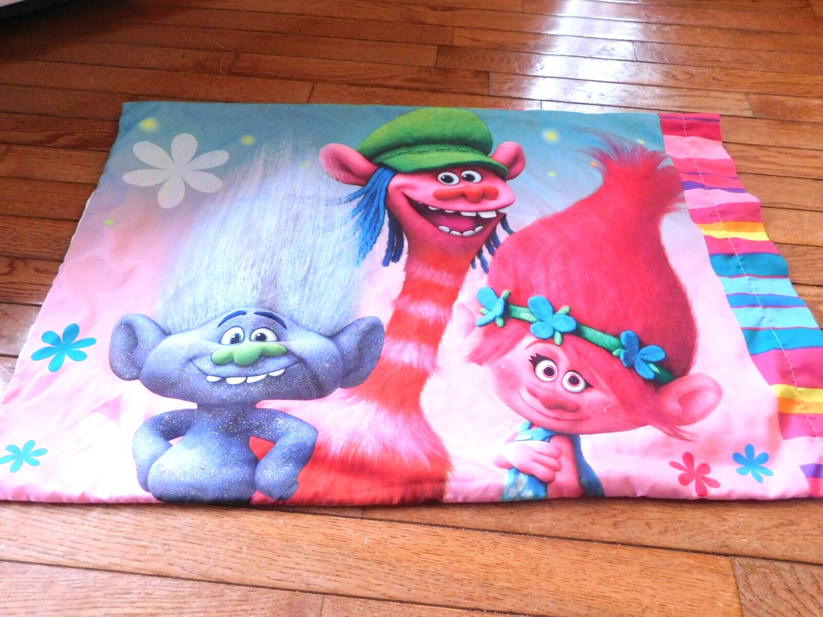 как выглядит Dreamworks Trolls Dolls Twin fitted bottom Sheet PILLOW CASE crafts fabric фото