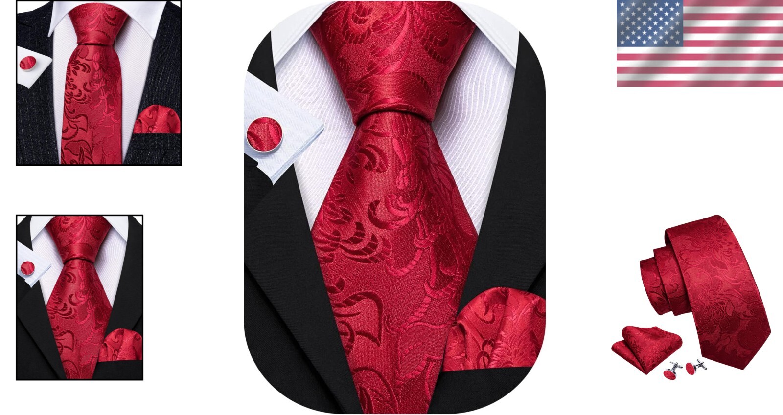 Elegant Flower Necktie Set for Men with Handkerchief Cufflinks - Wedding Ready