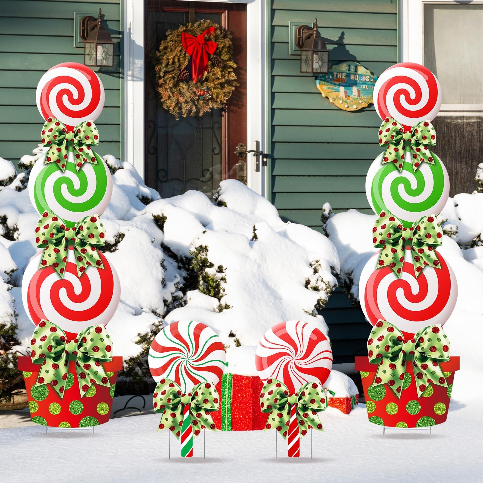 4 Pcs Peppermint Candy Christmas Decorations Outdoor Large Christmas Yard Sta...