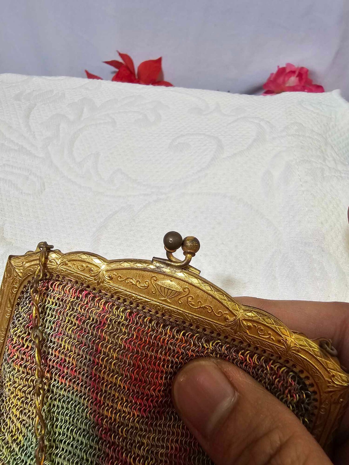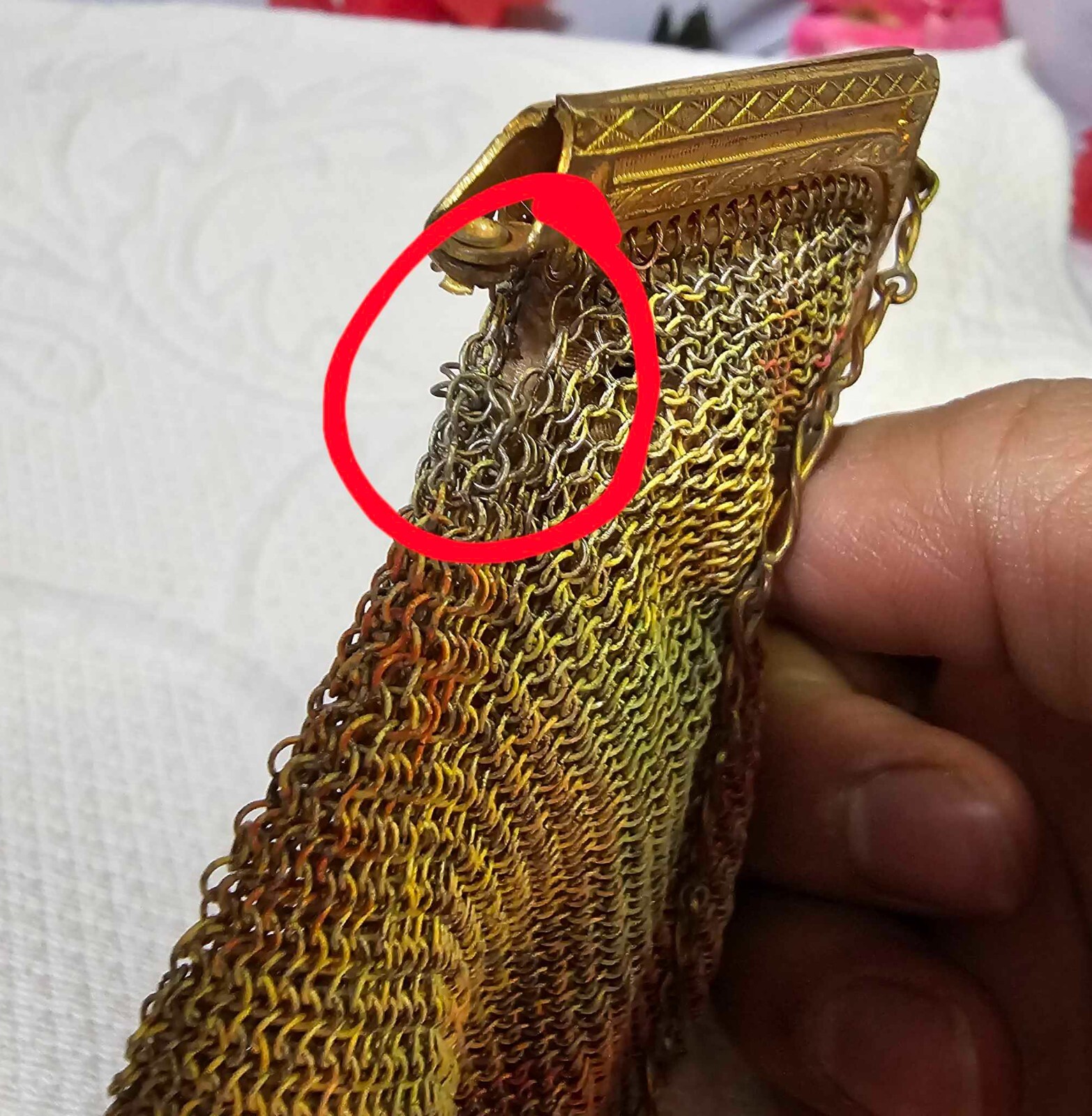 Victorian Vtg Chatelaine Mesh Chain Mail Coin Purse - READ...SEE