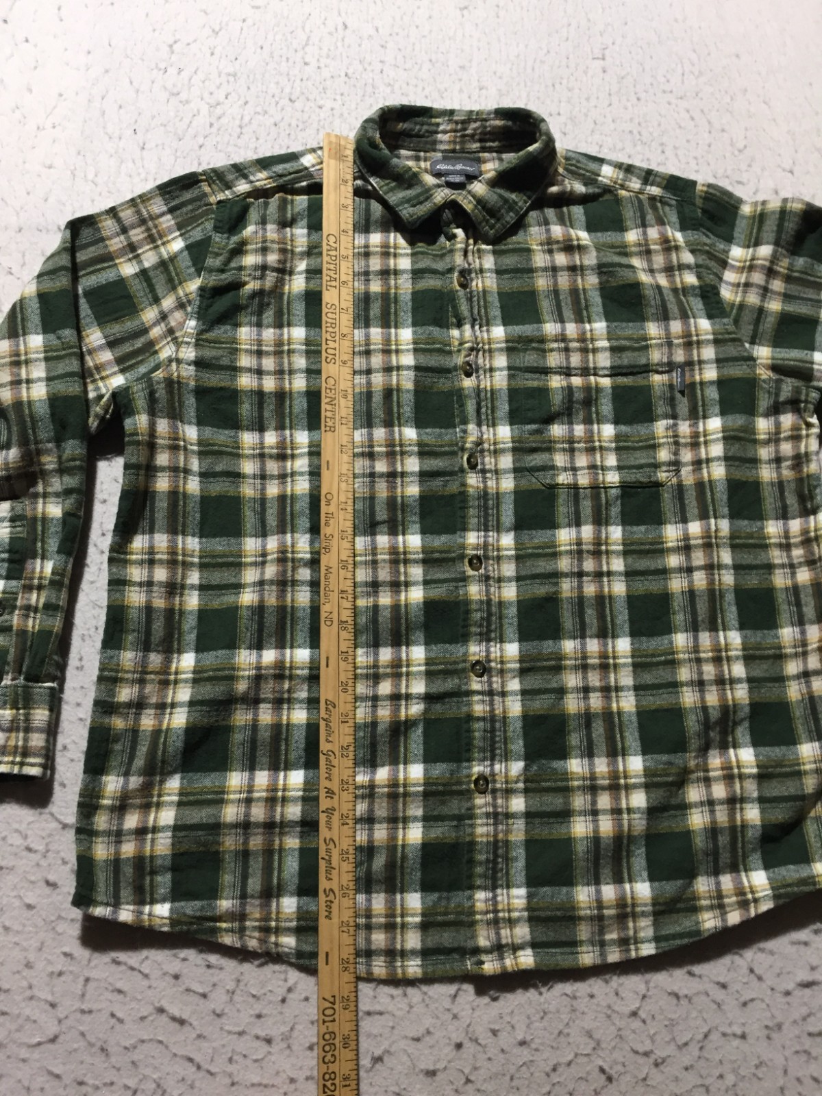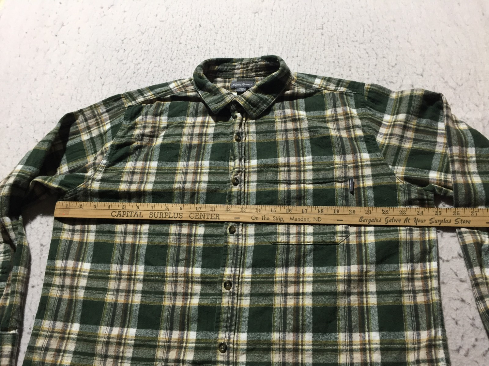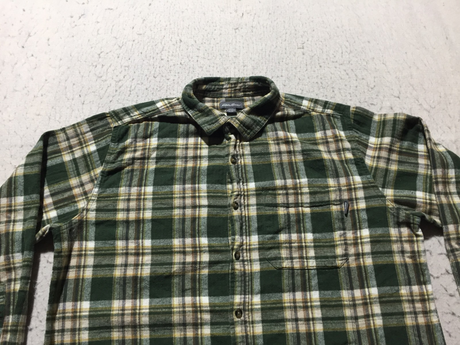 как выглядит Eddie Bauer Button Shirt Mens XL Green Plaid Long Sleeve Pocket Logo фото