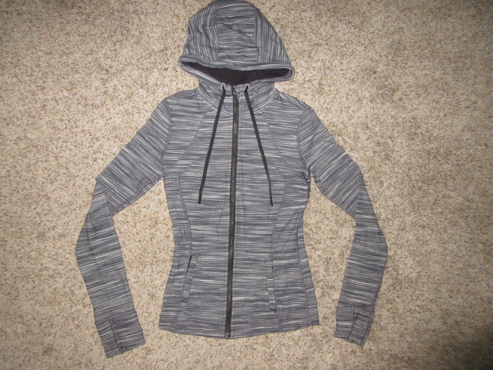 как выглядит Lululemon Hooded Define Jacket Nulu Heathered Black Gray SZ 4 Full Zip W4BF8S фото