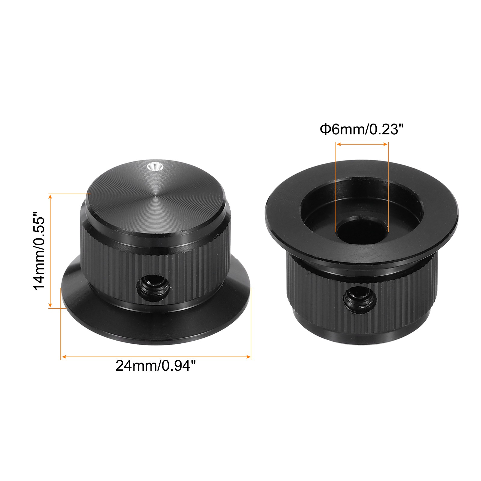 4 Pcs Aluminium Knobs with Round Dot Indicator, 1/4 6mm , 9/16 Black