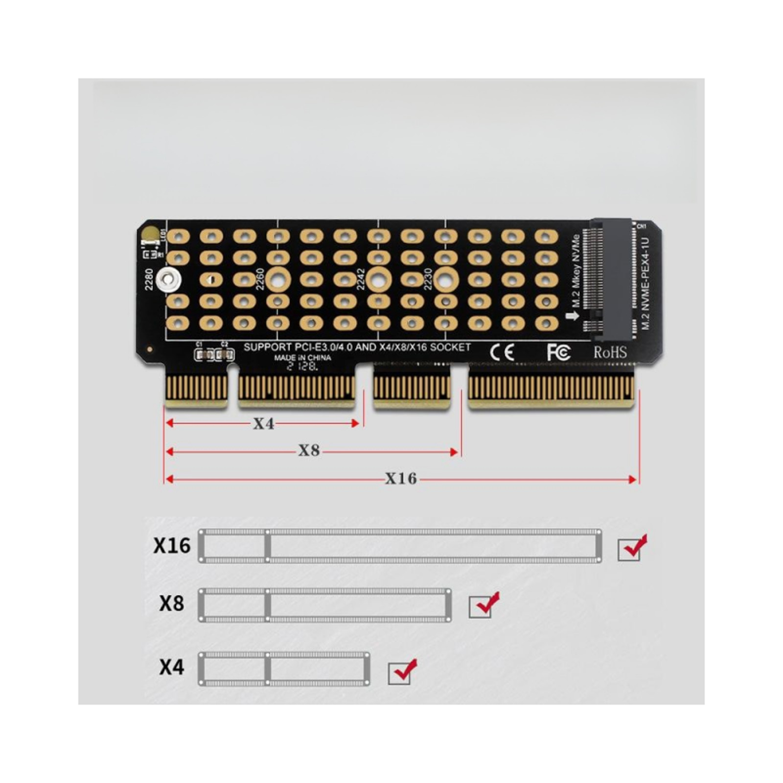 M.2 NVMe SSD to PCI-E Express 3.0 X4 X8 X16 Adapter Card Full Speed 2280 PH41-U1