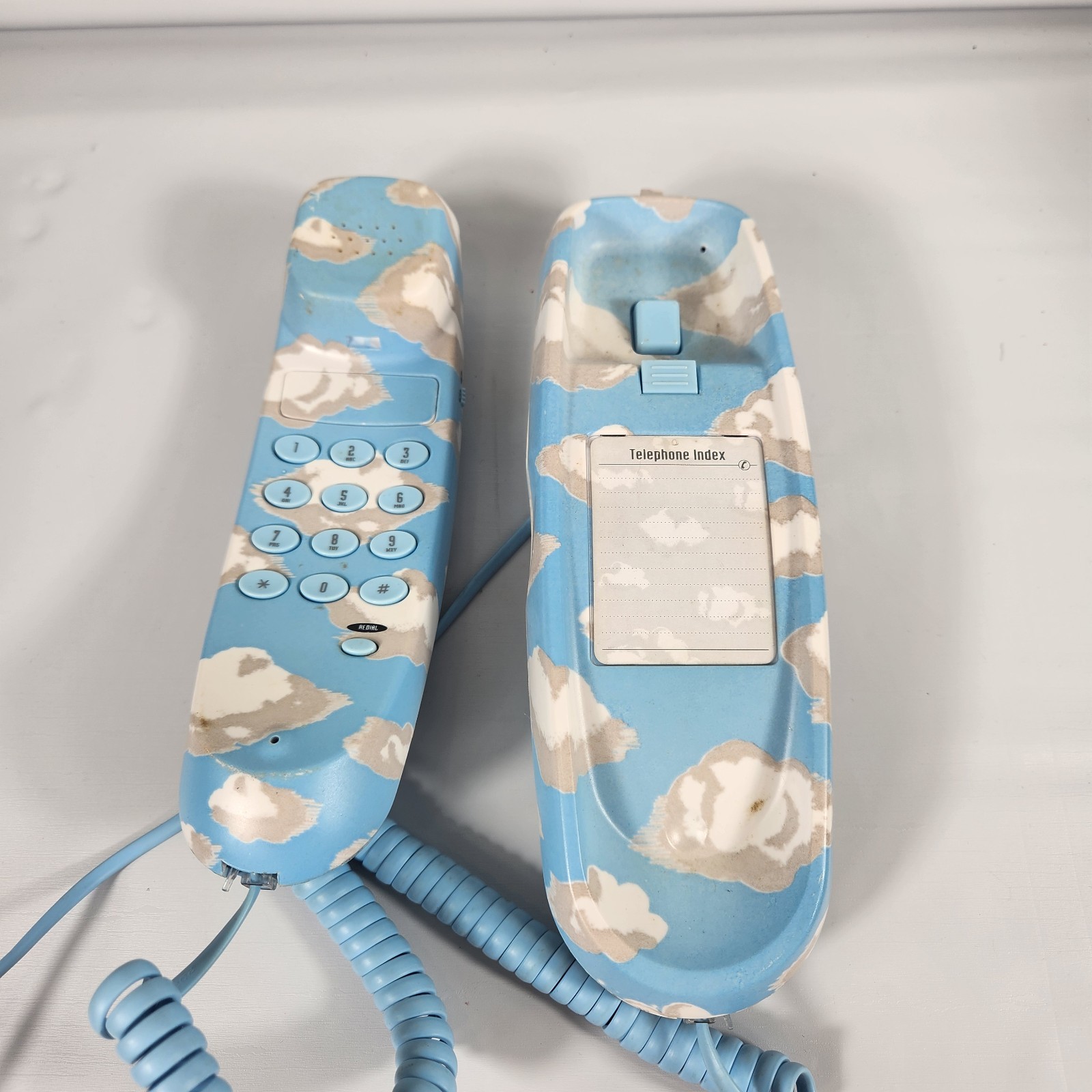 как выглядит Pushbutton Phone Nick Nora Home Clouds Land Line Trim Line Corded Telephone фото