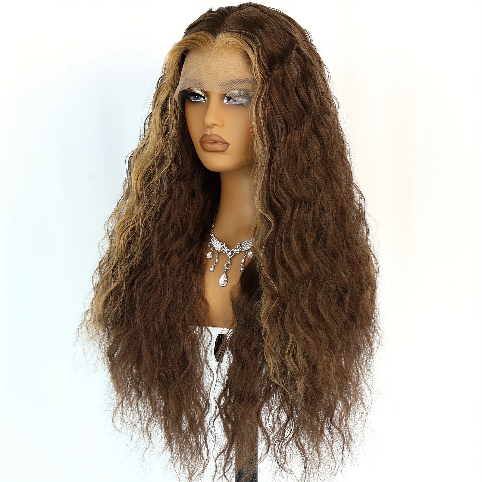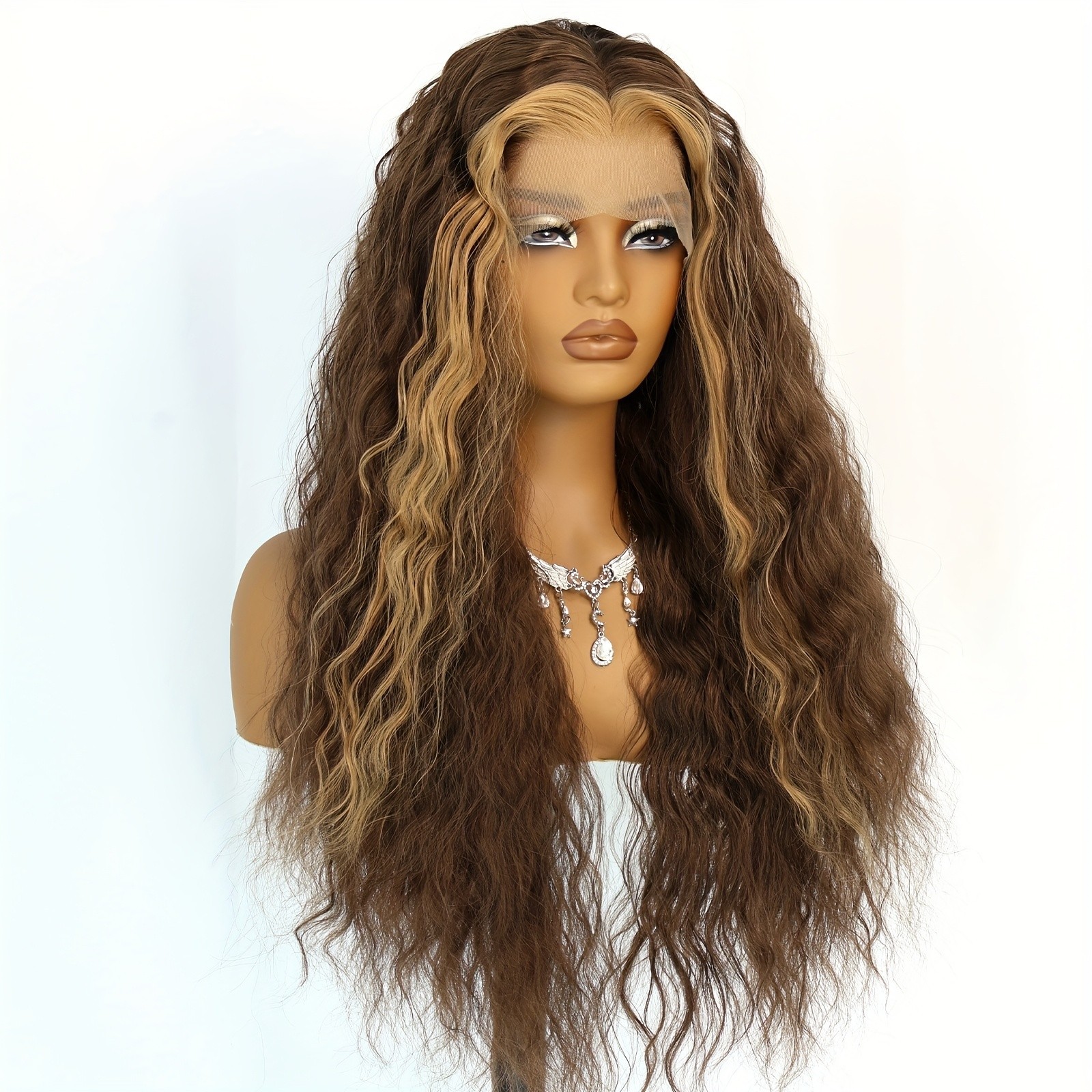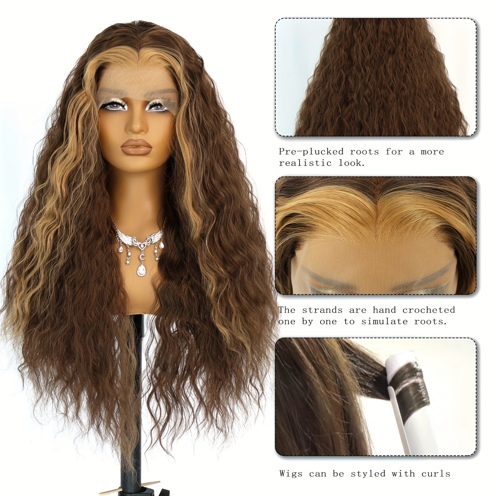 как выглядит Brown Blonde Highlights Loose Curly Glueless Lace Front Wigs Pre Plucked Women фото