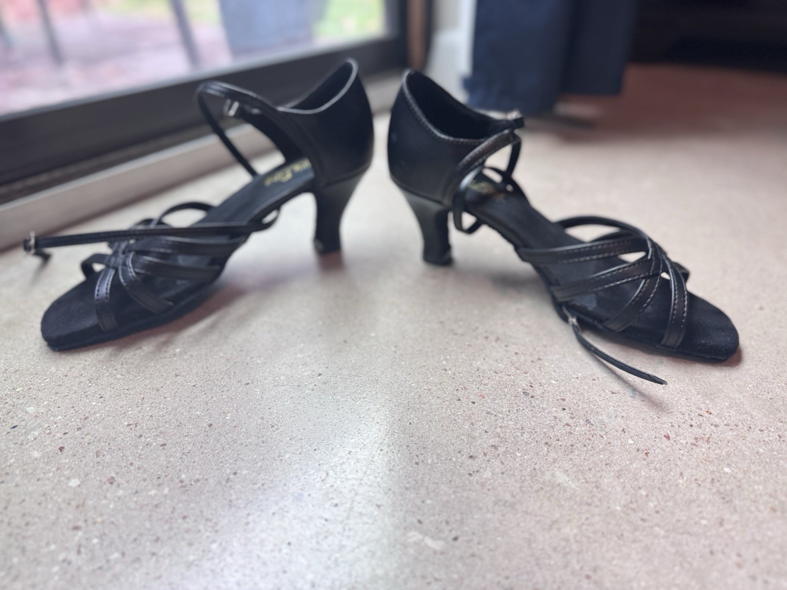 Very Fine Black Latin Dance Shoes Size 6 Women s Ankle Strap Heels Never Worn