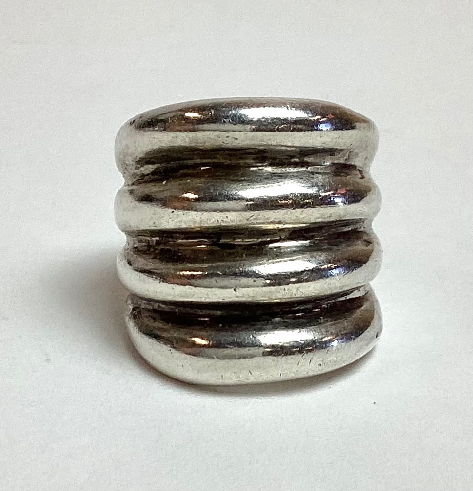 Vintage Ribbed .925 Sterling Silver Ring Size 5, Approx. 7.13 Grams