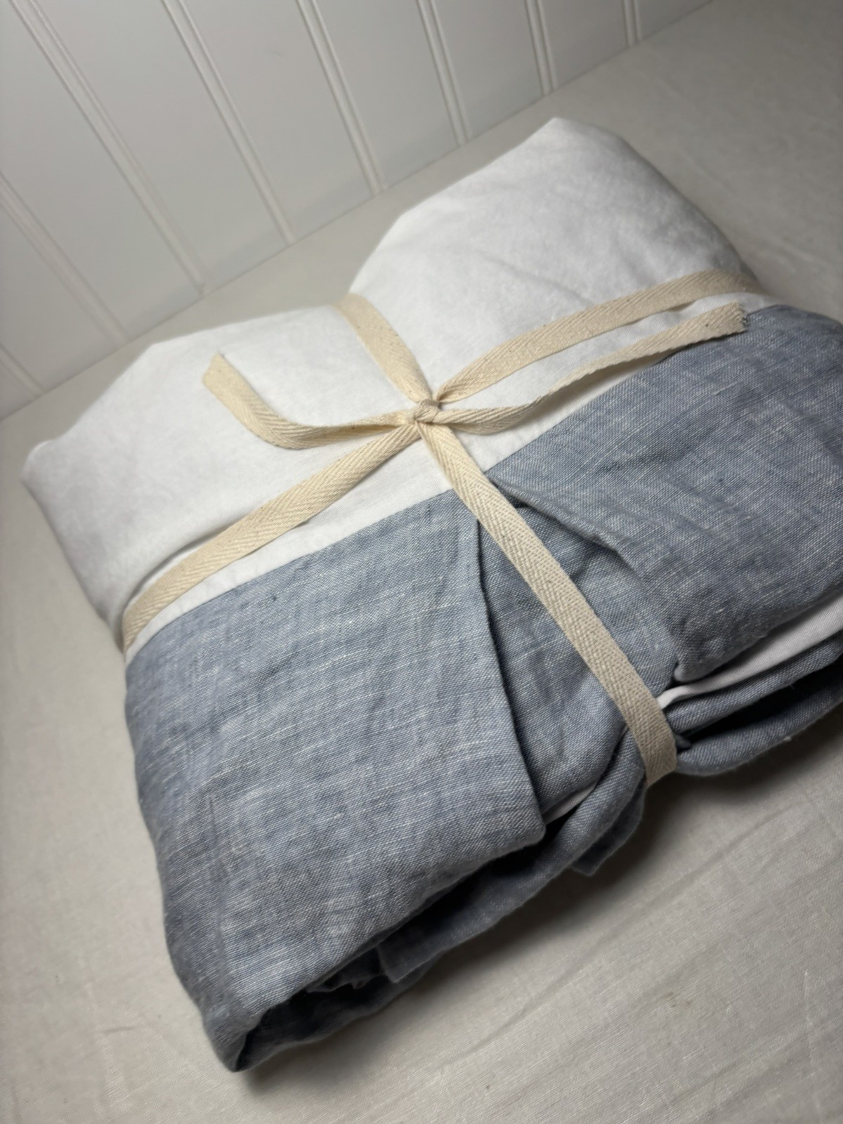 Pottery Barn European Linen Crib Skirt Chambray Blue 16 Drop