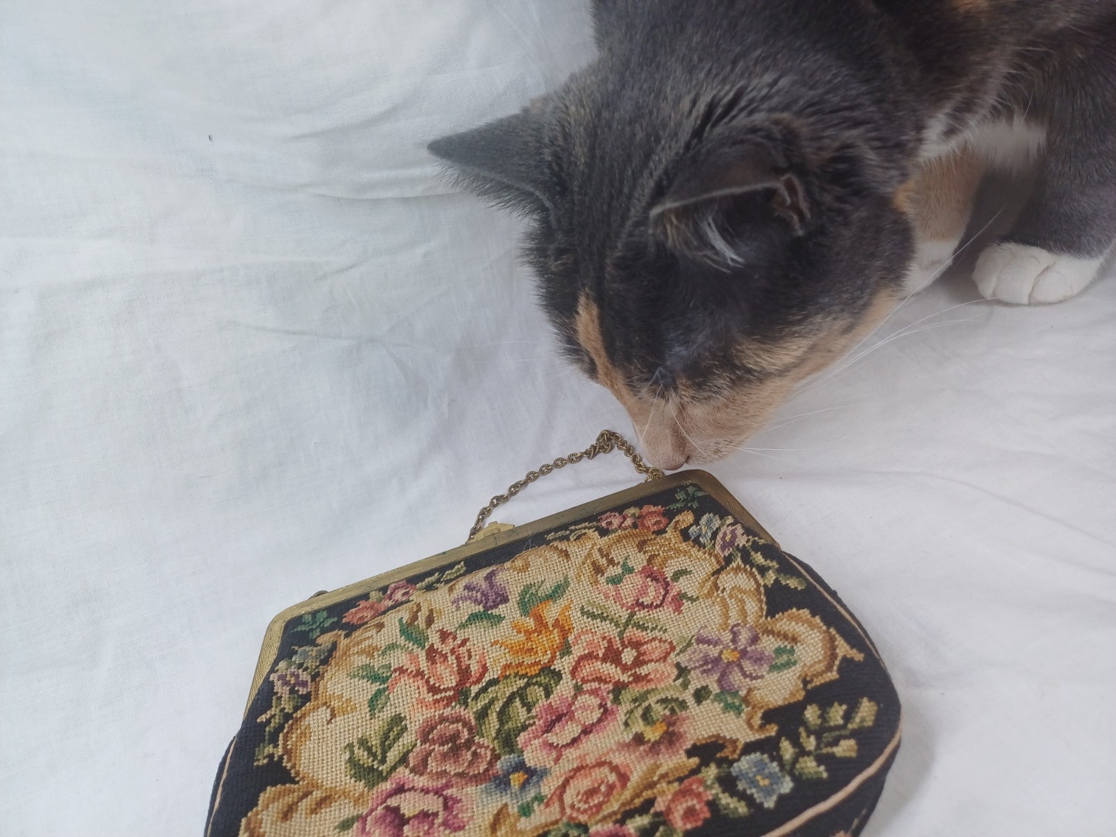 как выглядит Victorian Style Floral Needlepoint Purse/Handbag with Chain Rhinestone clasp фото