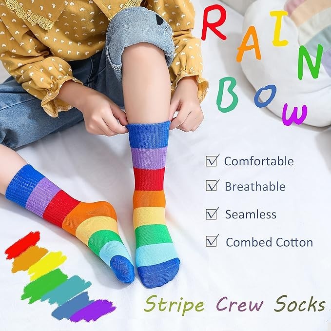 Girls Seamless Crew Cotton Socks Kids Casual 6-8 Years Rainbow Stripes mix c