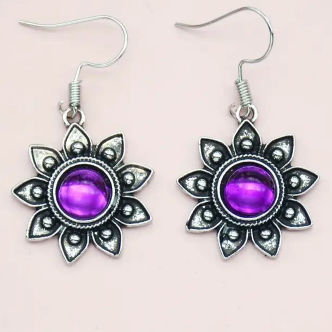 New Bohemian Style Earrings featuring Purple Imitation Crystal Sunflower Pendant