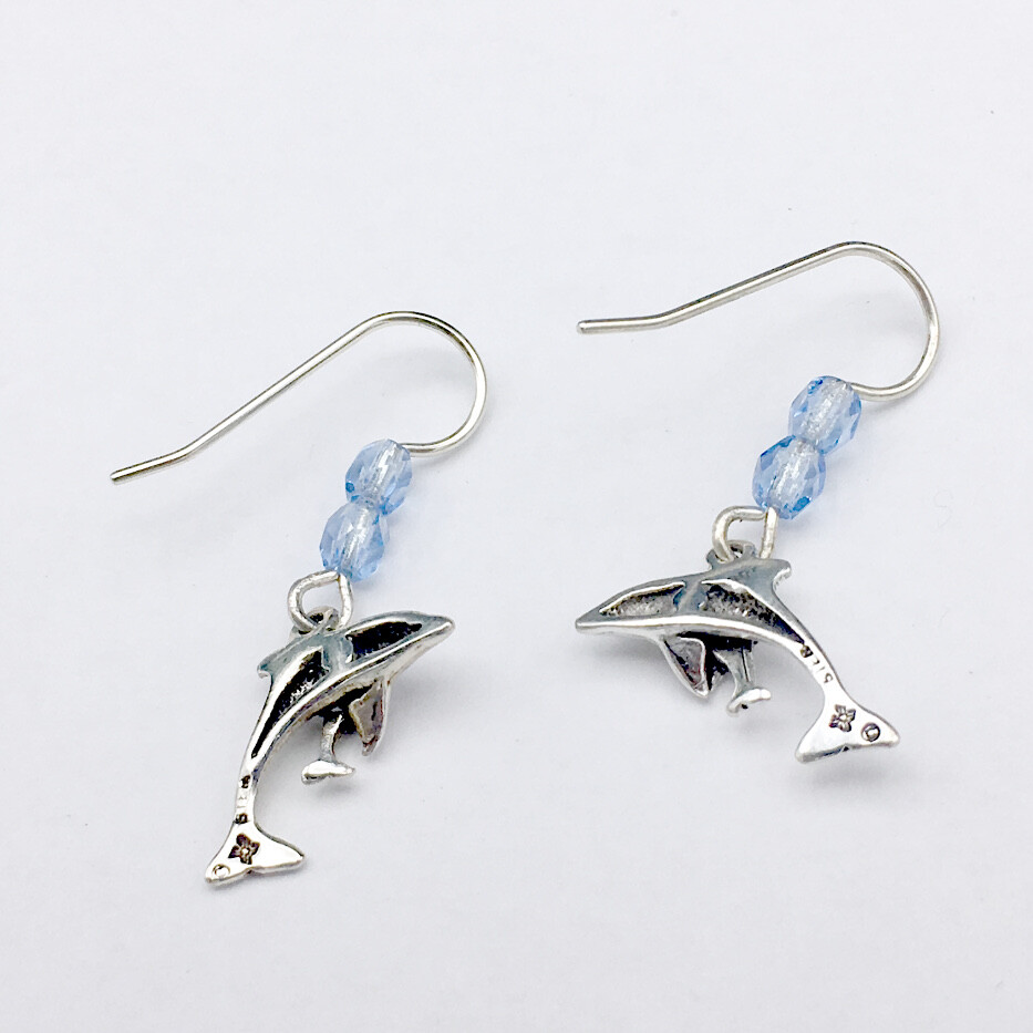 Sterling silver Dolphin w/ calf dangle earrings-ocean-dolphins, sea, marine,baby