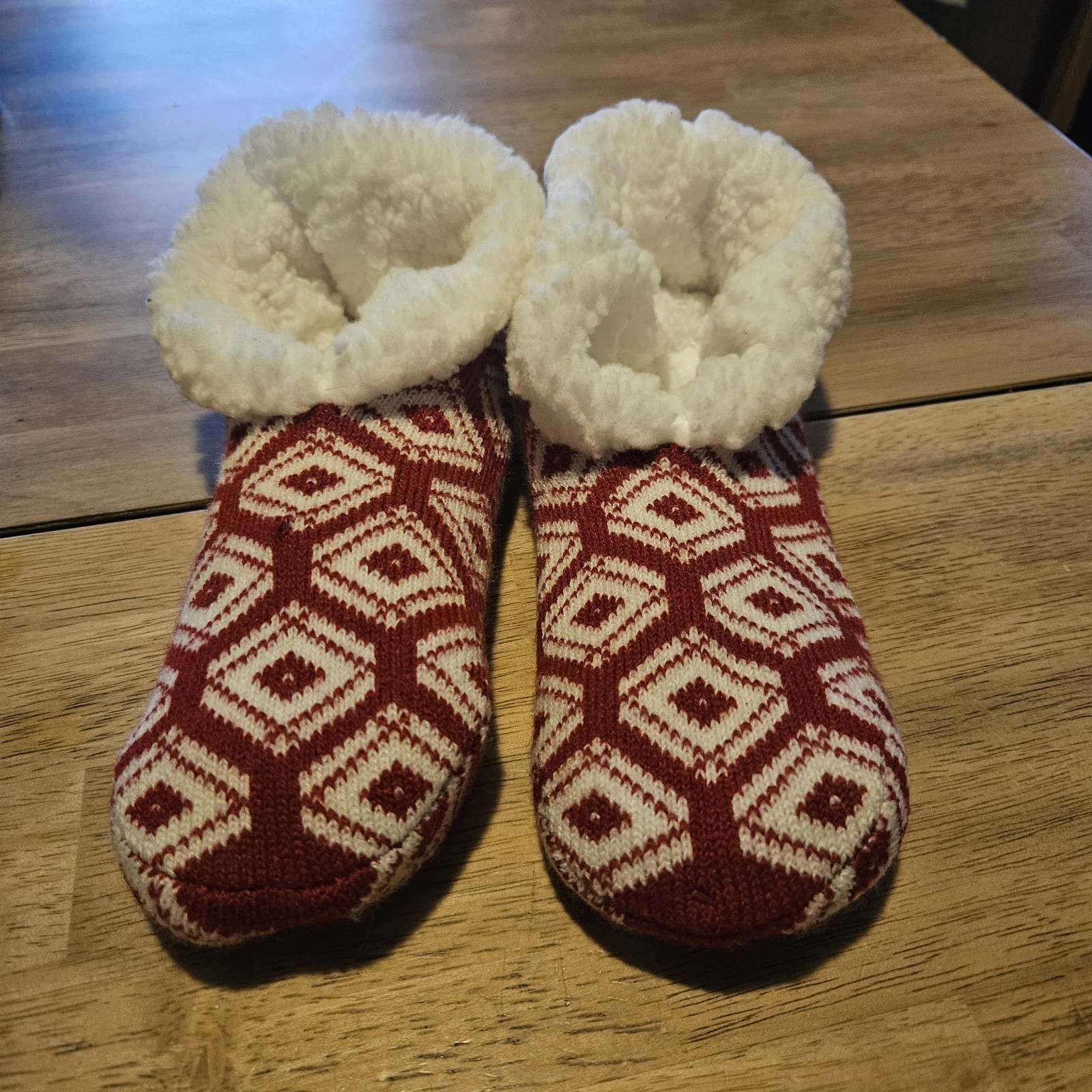 Like New Christmas Slipper Socks Red/White Fuzzy Non Skid