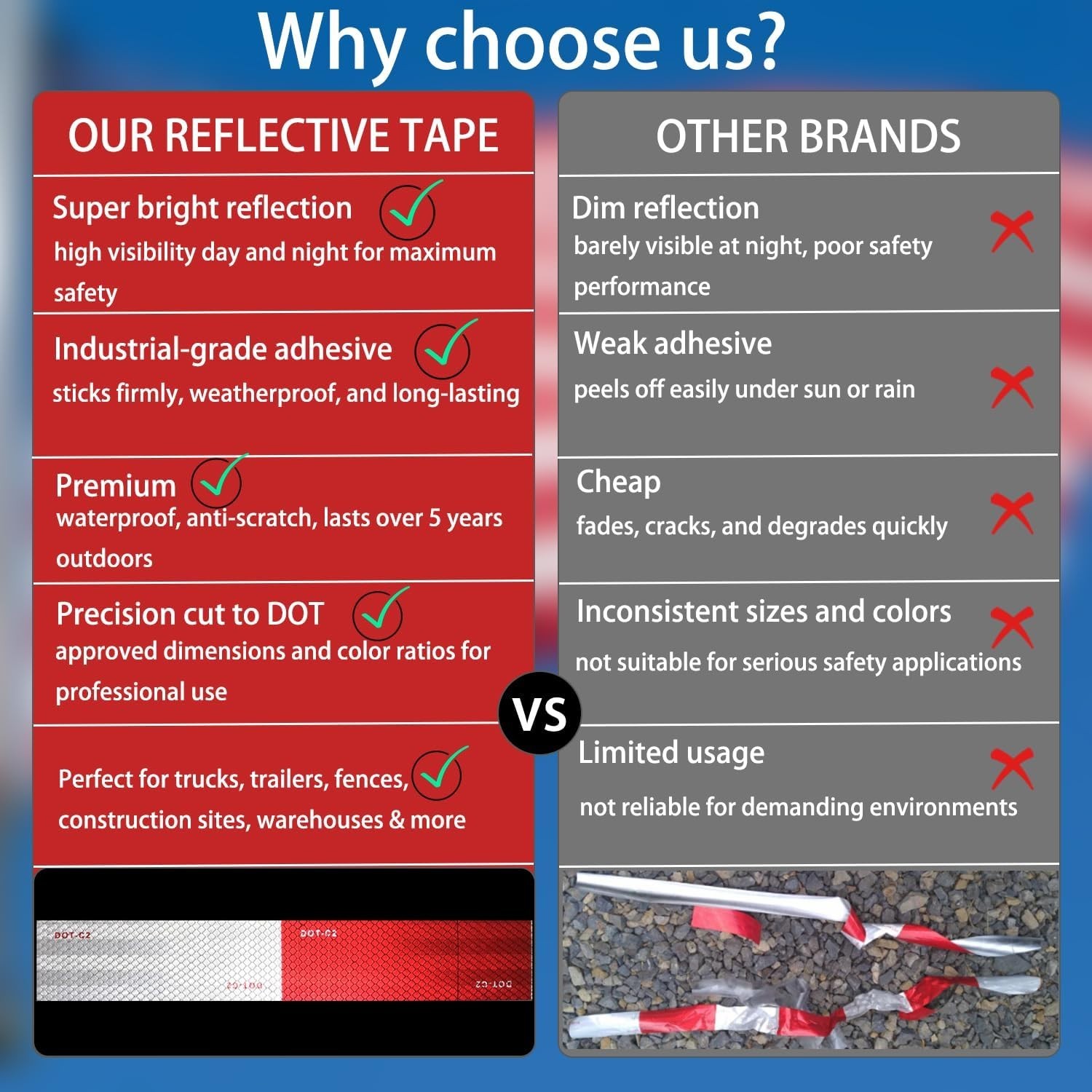 2 inch x 160Feet Reflective Safety Tape DOT-C2 Waterproof Red and White Adhes...