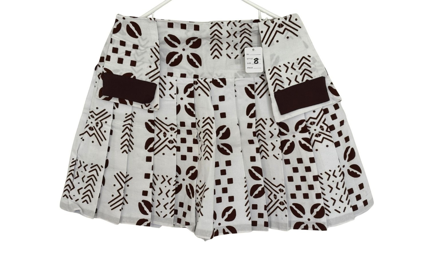 как выглядит Handmade Ankara Mini Skirt Top Set  Brown White African Print Size 6, NWT фото